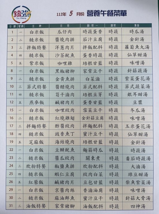 111學年度下學期5月營養午餐菜單上菜囉~~