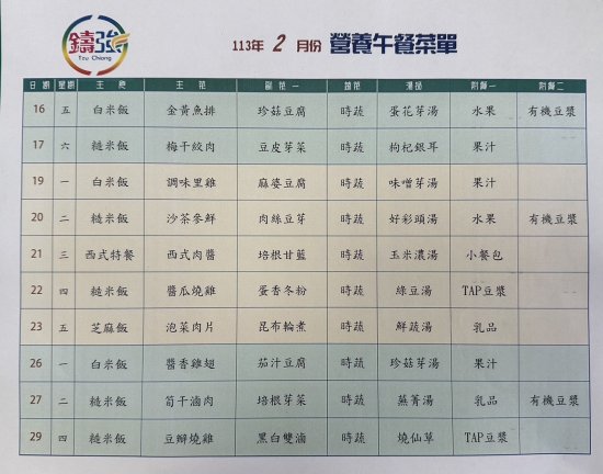 112學年度下學期2月營養午餐菜單上菜囉~~