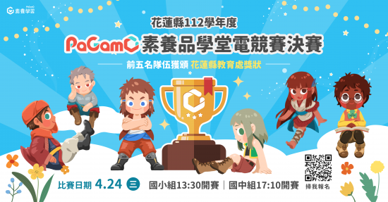 | 有關本縣「 112 學年 PaGamO 素養品學堂電競賽--決賽」,對不具參賽經驗者仍可參賽,敬請學校鼓勵學生踴躍報名參加,請查照。 |