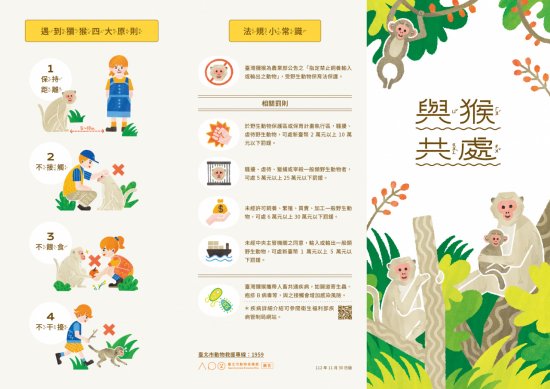 臺北市動物保護處委託財團法人農業科技研究院規劃「與猴共處」摺頁電子檔。