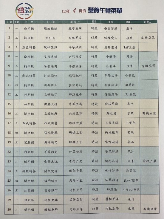 112學年度下學期4月營養午餐菜單上菜囉~~
