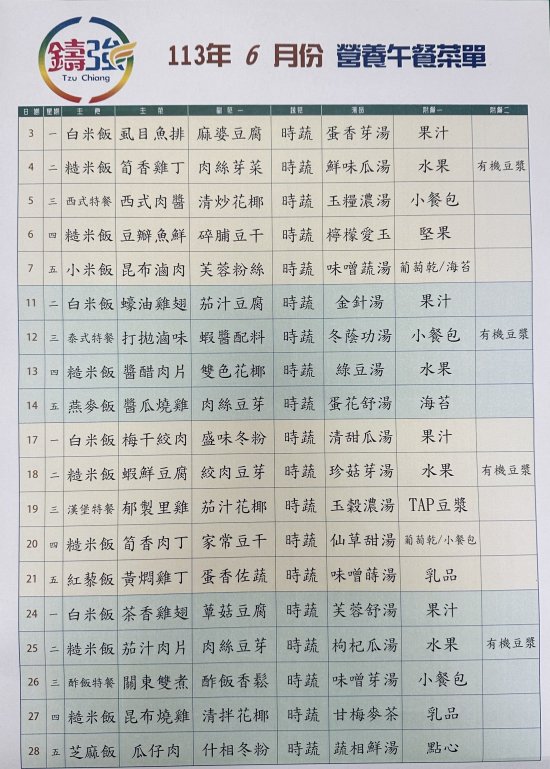 112學年度下學期 6月營養午餐菜單上菜囉~~