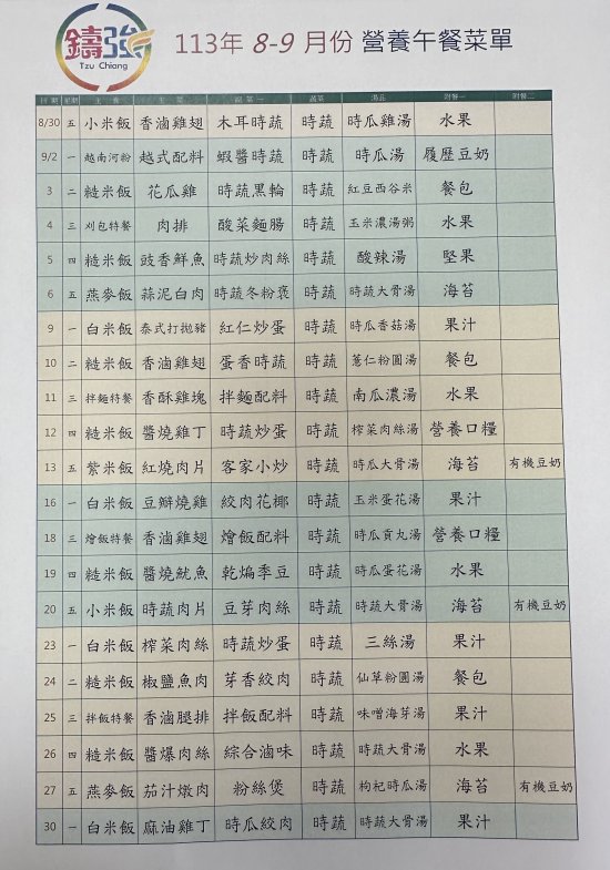 113學年度上學期 8-9月營養午餐菜單上菜囉~~