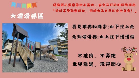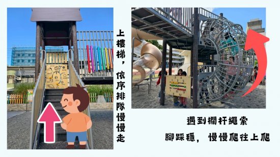 大溜滑梯區 (樓梯、繩索區請依序排隊、由下往上爬)