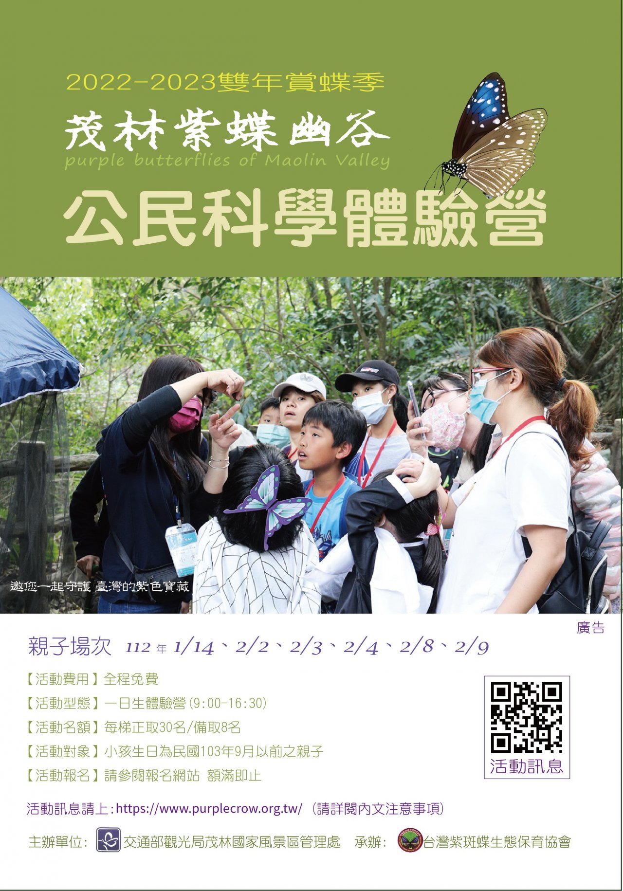 二、 旨揭活動為讓更多人喜歡茂林紫斑蝶生態,認識紫斑蝶之美,並增進環境保育概念,資訊如下: