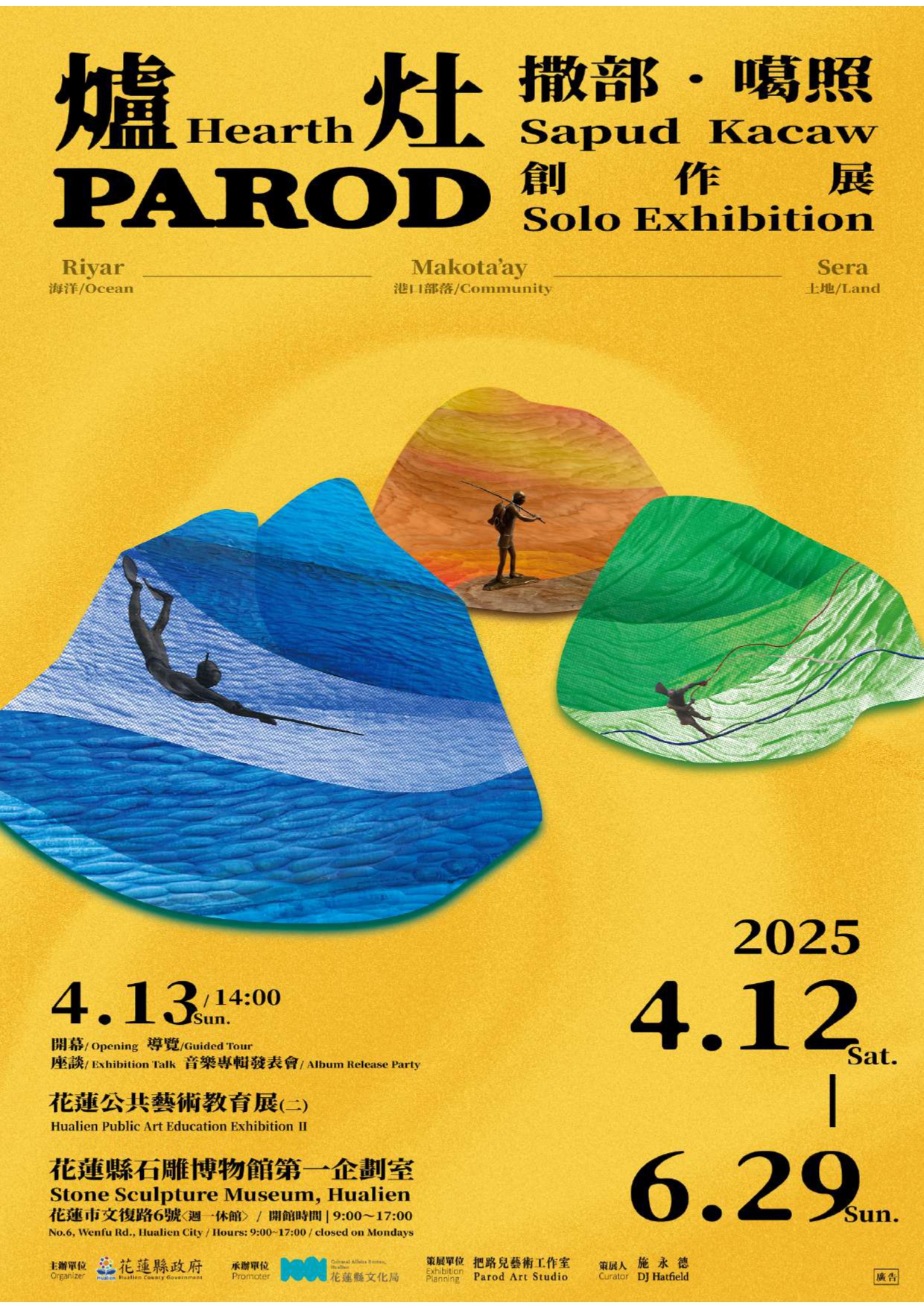| 主旨: | 檢送本局辦理「花蓮公共藝術教育展(二) 『PAROD爐灶』撒部‧噶照創作展」展覽海報電子檔1份,惠請協助宣傳公告,至紉公誼,請查照。 |