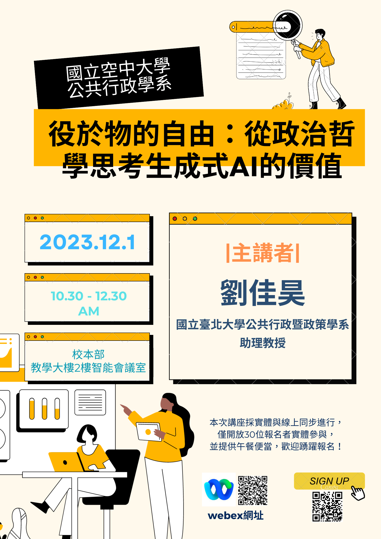 (四)參與方式:本活動採現場與線上會議同步方式進行,現場參與人數限制為30人,遠距參與採用Webex meeting線上會議室。