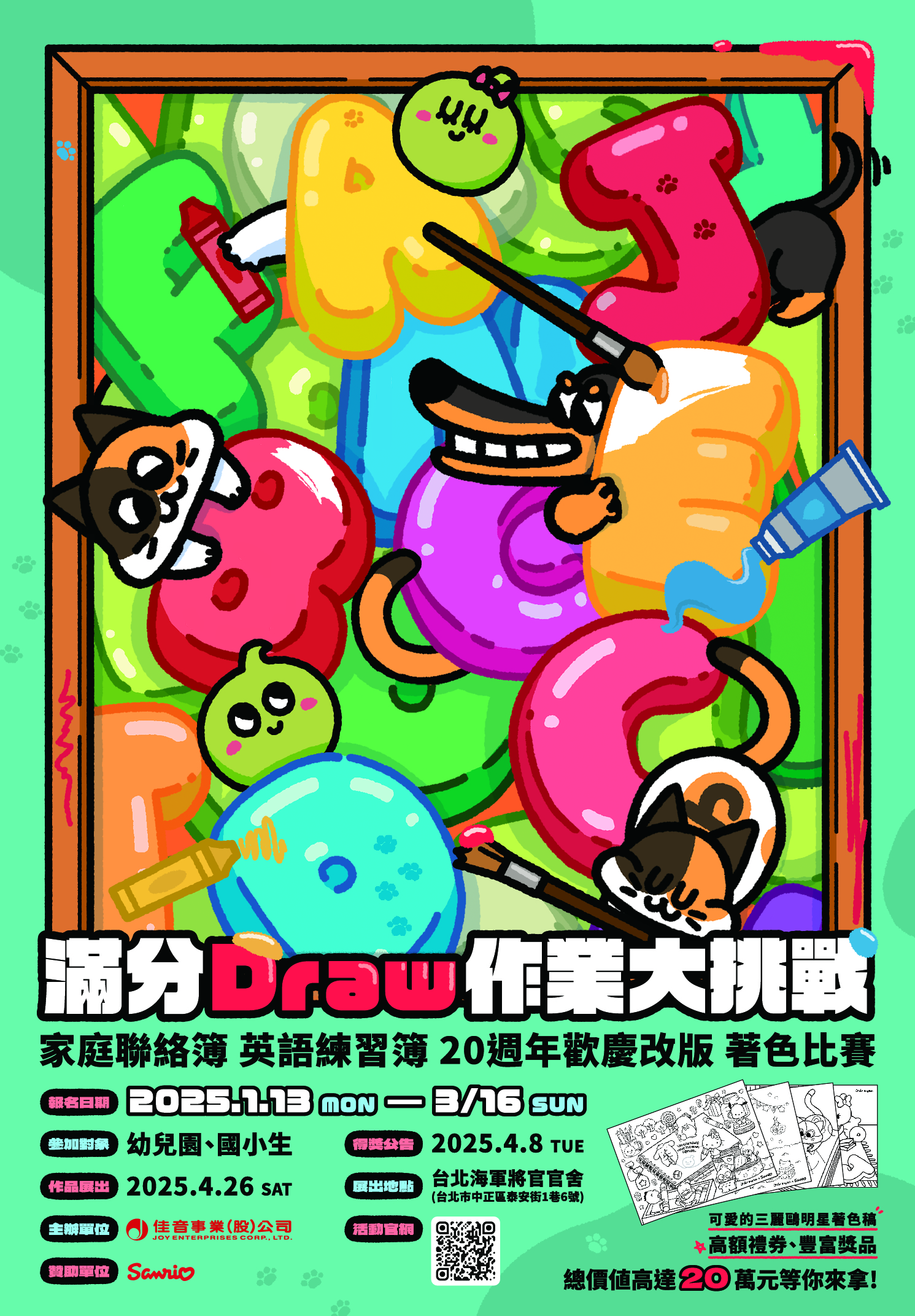 5.將參賽作品放進大信封,於 2025/3/16(日)前以郵戳為憑,寄至「106 台北市大安區信義路四段 306 號 15 樓,滿分 Draw 作業大挑戰活動小組收」。