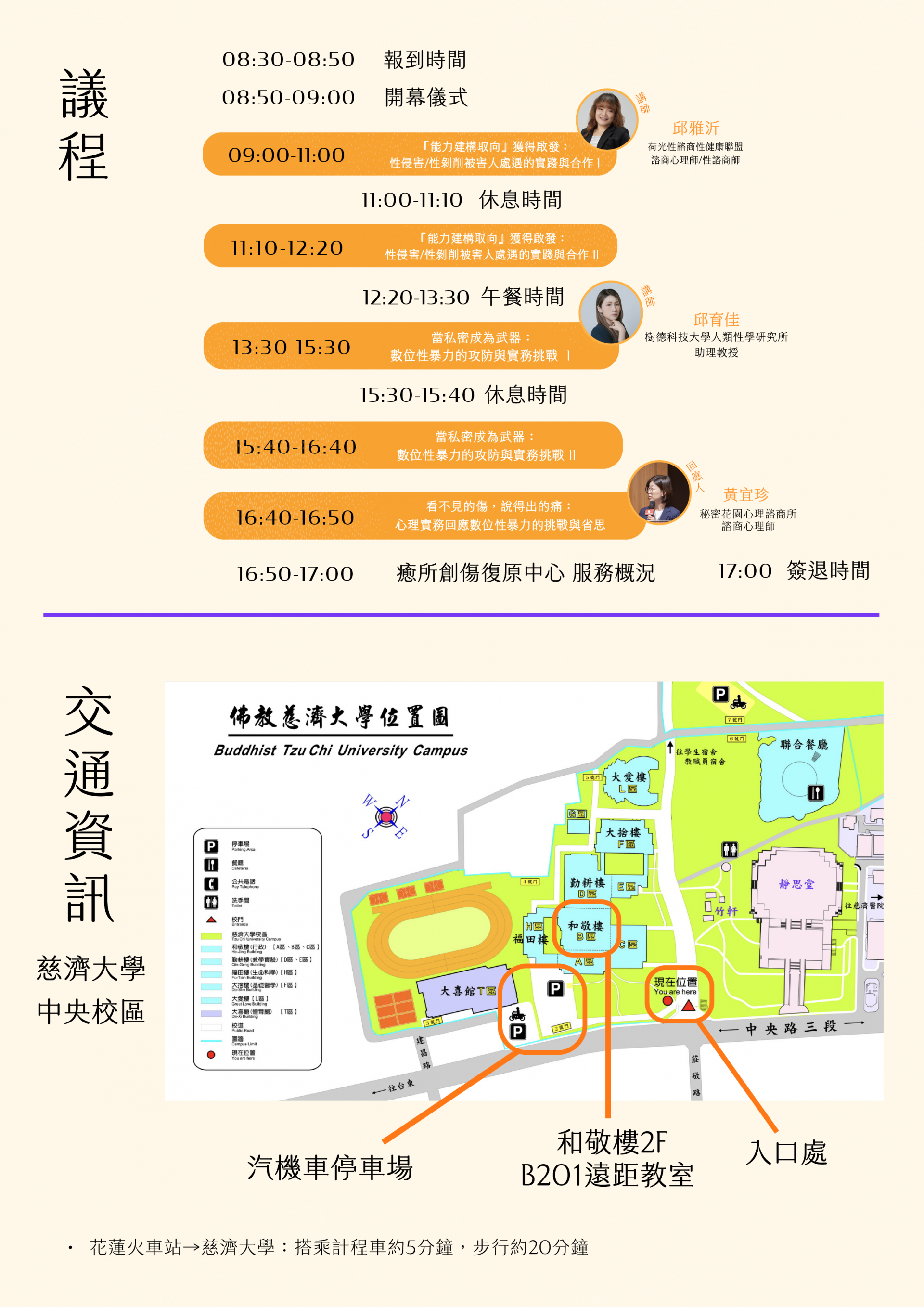 - 研討會時間: 114 年 7 月 18 日(五) 09:00-17:00 ;地點:慈濟大學 中央校區 B201 遠距教室 / 花蓮市中央 路三段 701 號