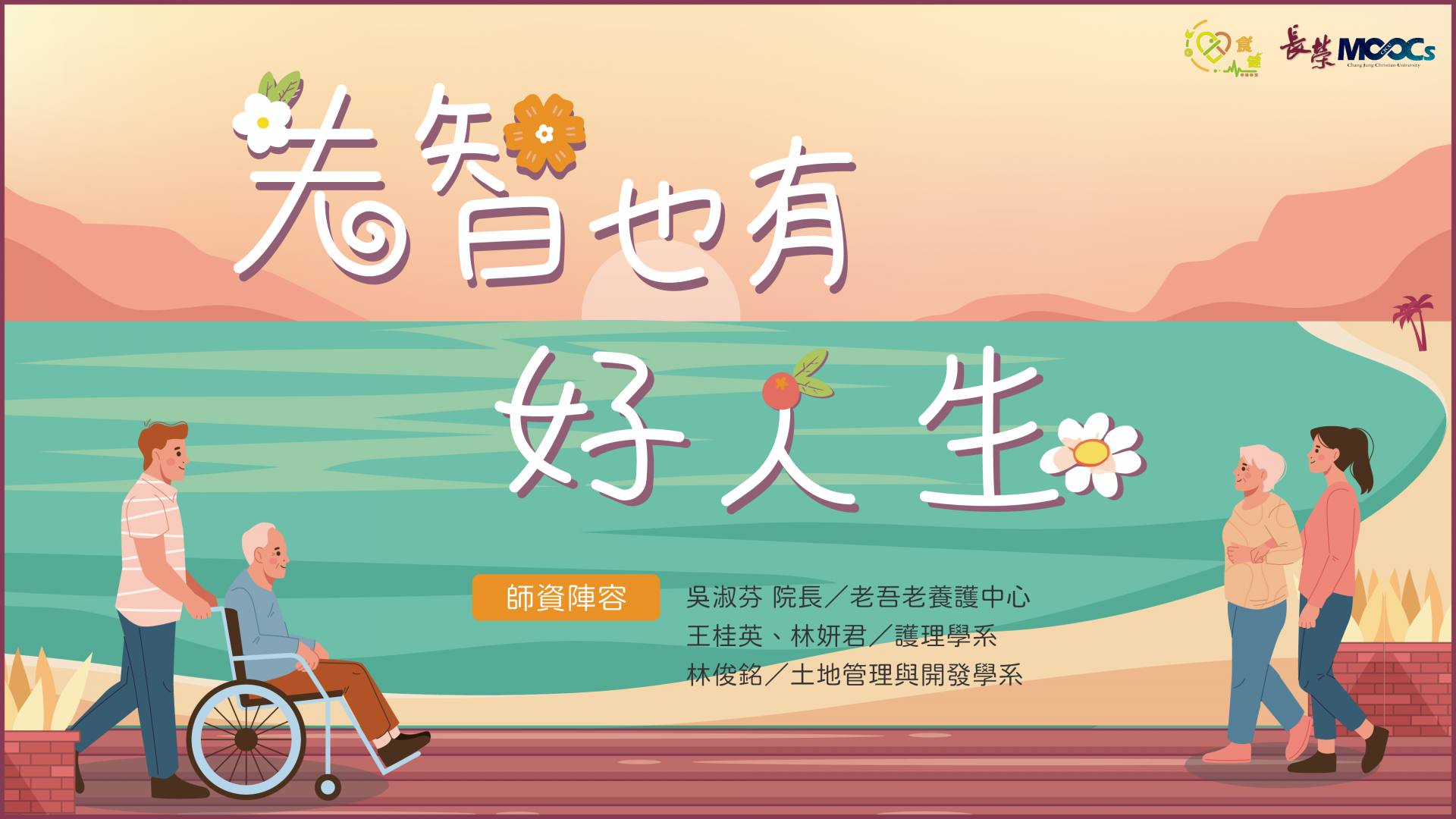 | 一、 | 為協助教師掌握教學創新趨勢,拓展專業知能與學識領域,長榮大學於教育部磨課師平臺開設「失智也有好人生」線上課程,相關資訊如下: |