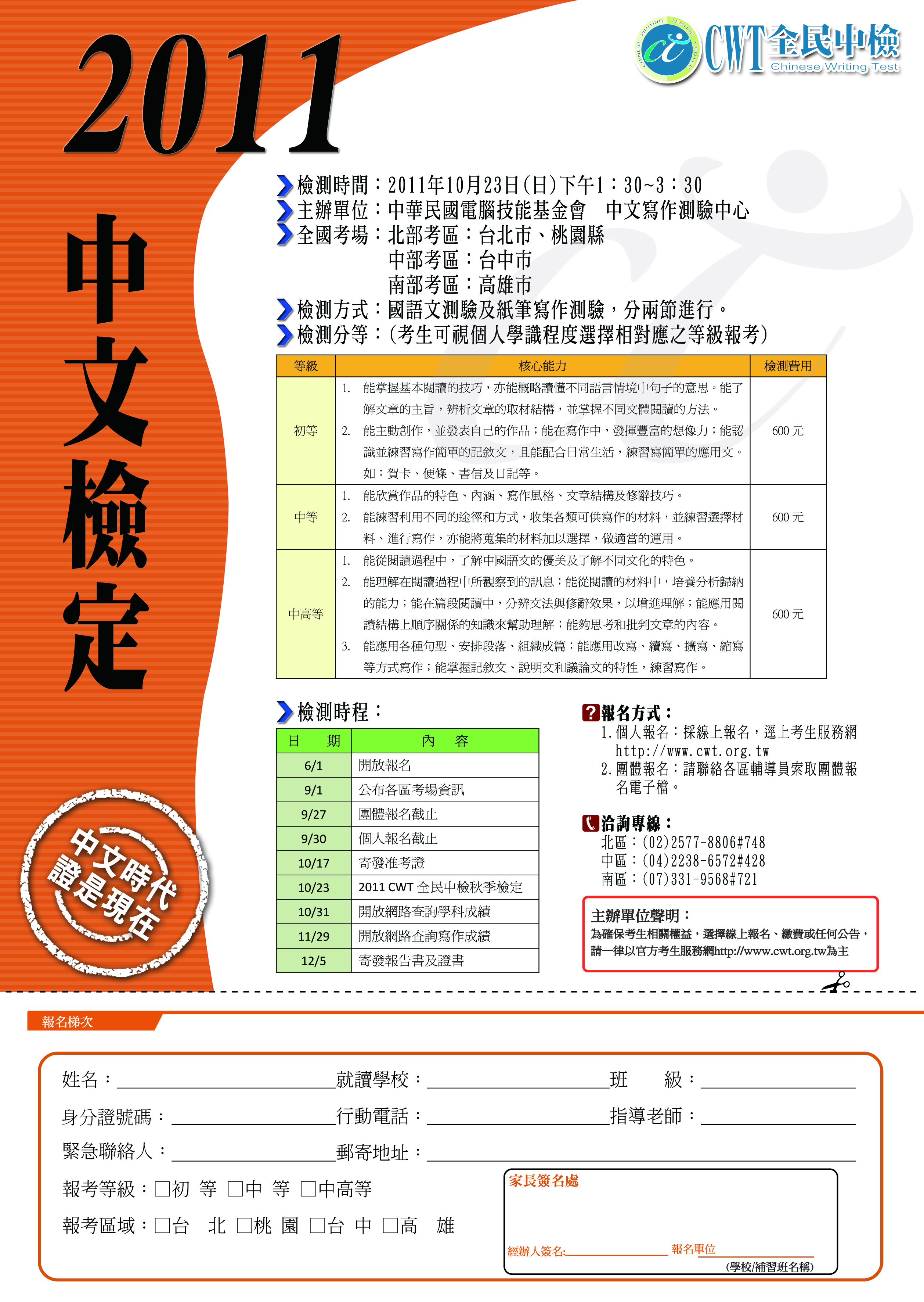 1) 2011CWT全民中檢秋季檢定活動辦法