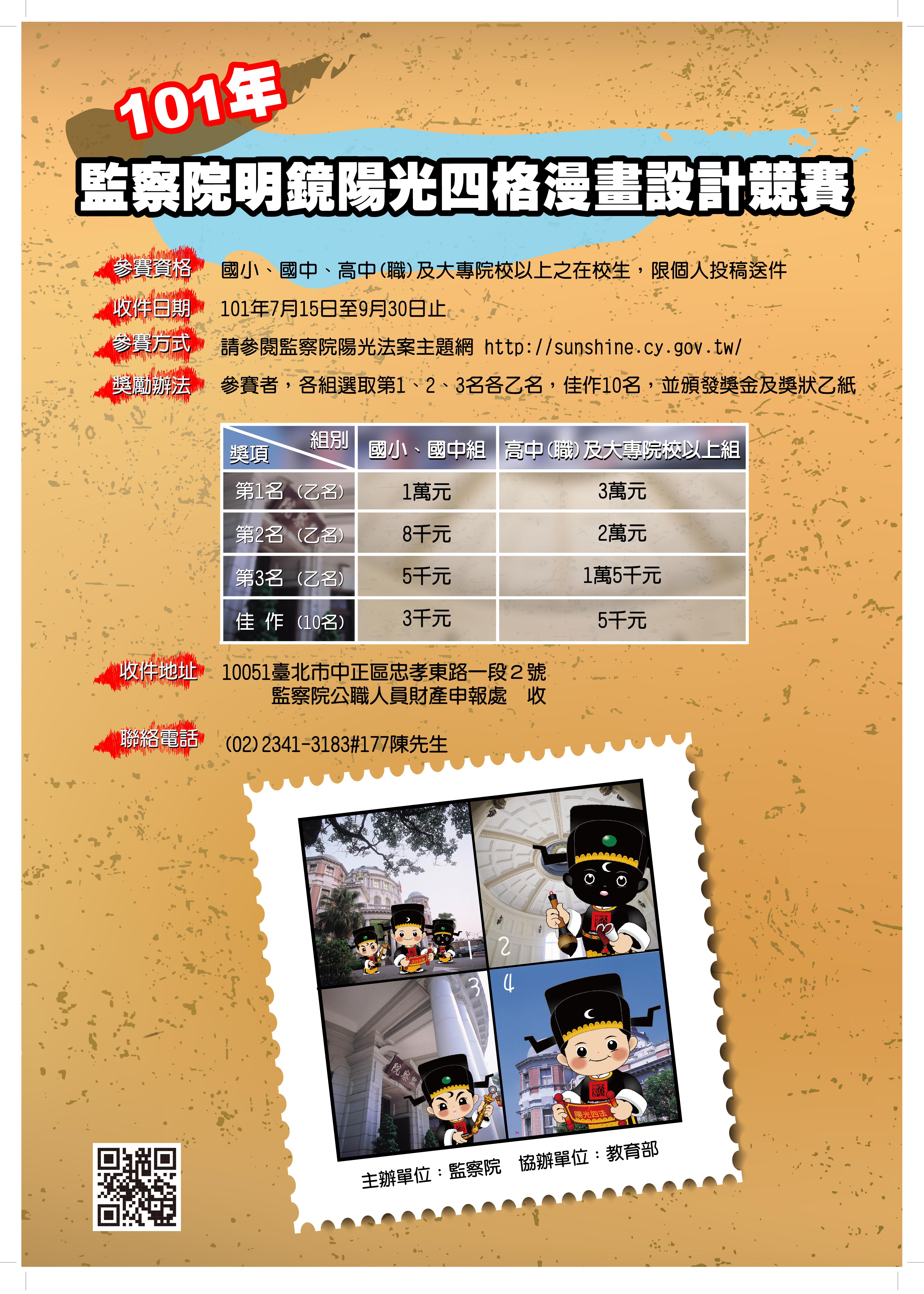 101年監察院明鏡陽光四格漫畫設計競賽,歡迎各校學生踴躍參加比賽。