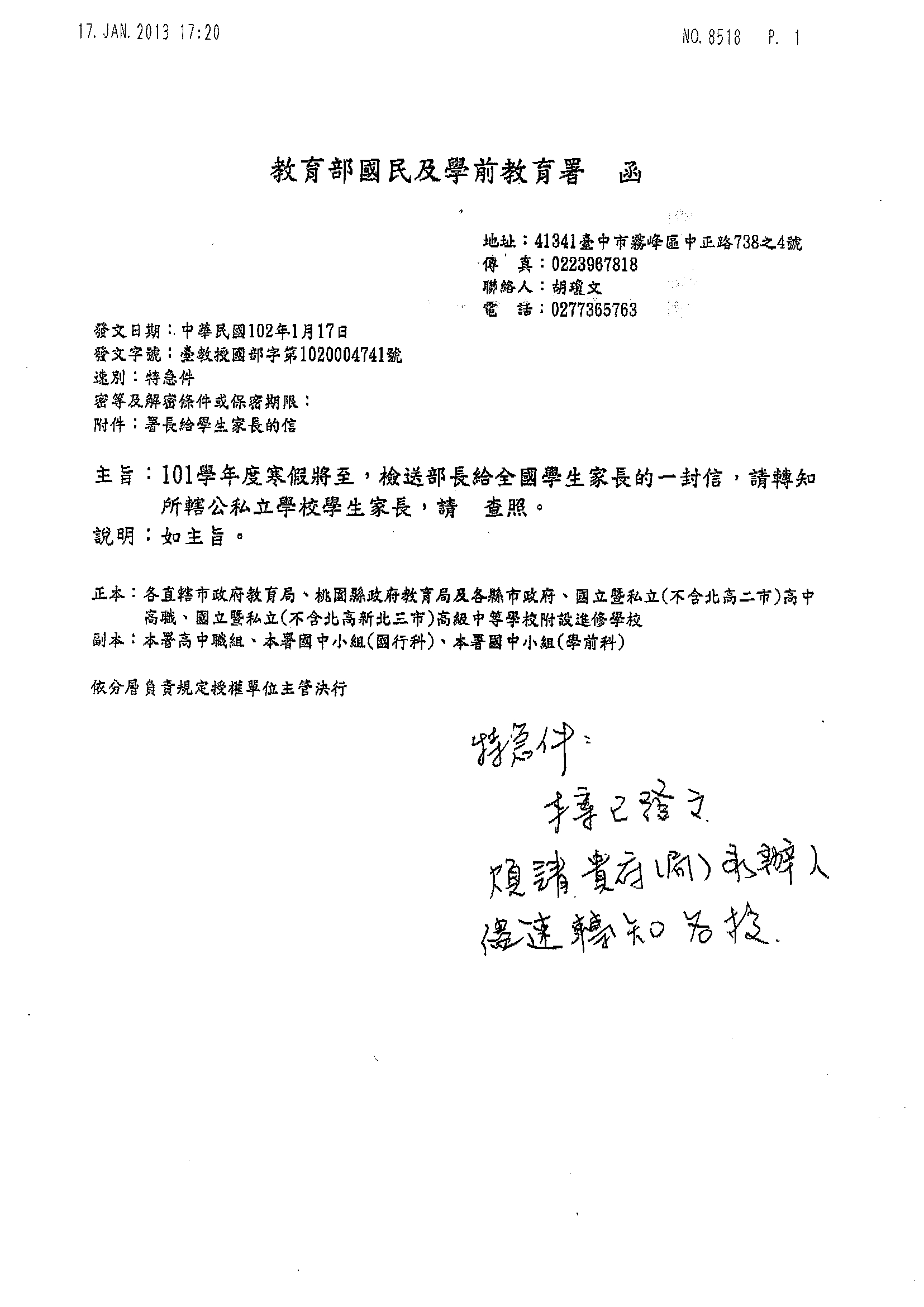 依據教育部國民及學前教育署 102 年 1 月 17 日臺教授國部字第 1020004741 號函辦理。