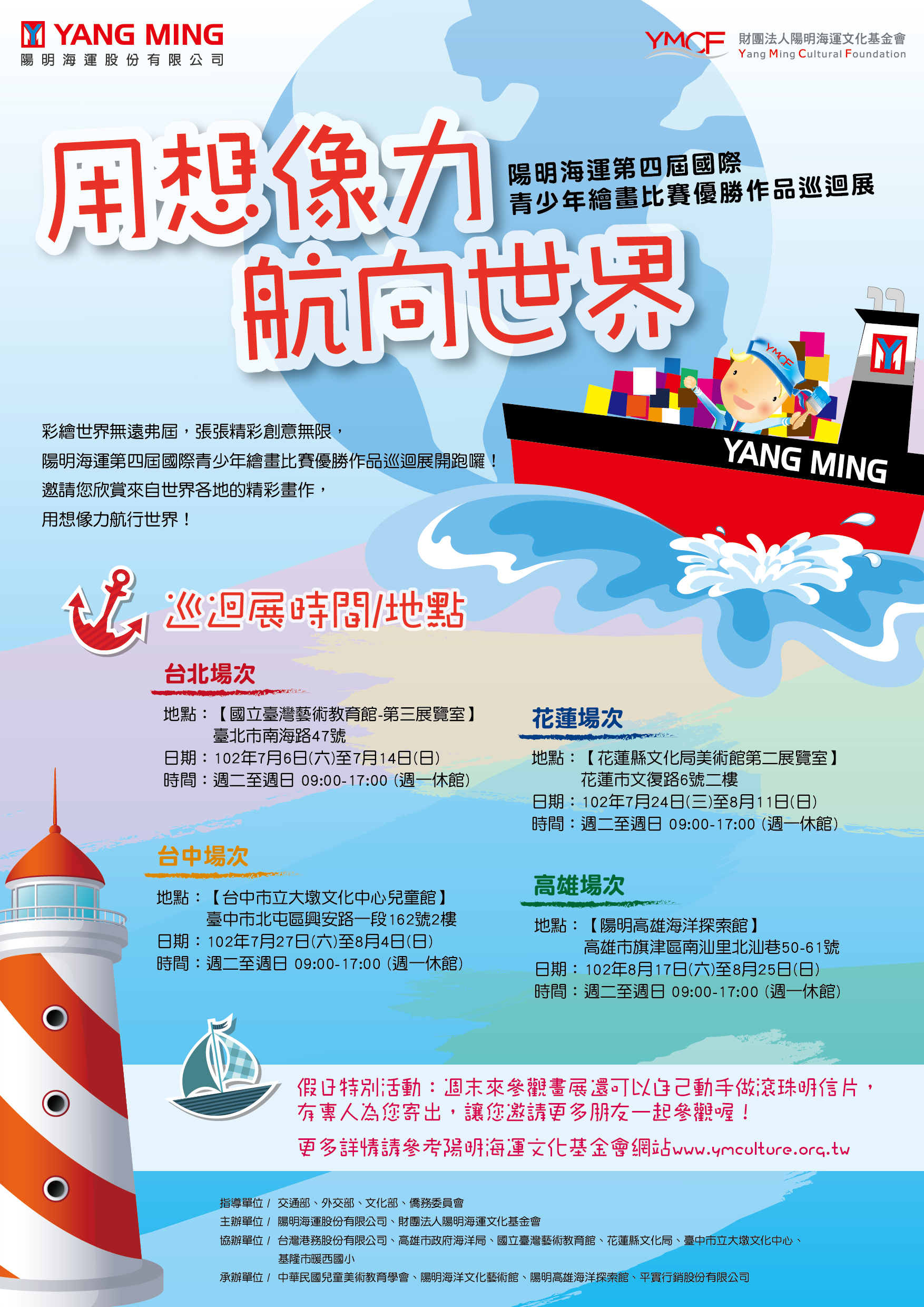 有關財團法人陽明海運文化基金會辦理「第四屆國際青少年繪畫比賽優勝作品巡迴展」簡章,歡迎各校師生及家長前往觀賞。