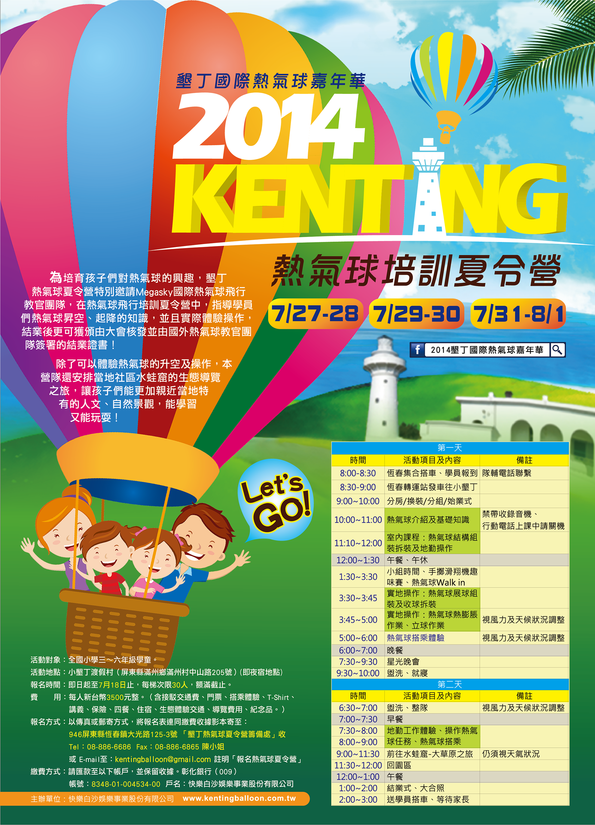 【轉知】快樂白沙娛樂事業股份有限公司辦理「2014墾丁國際熱氣球嘉年華-熱氣球培訓夏令營」,請 查照轉知。