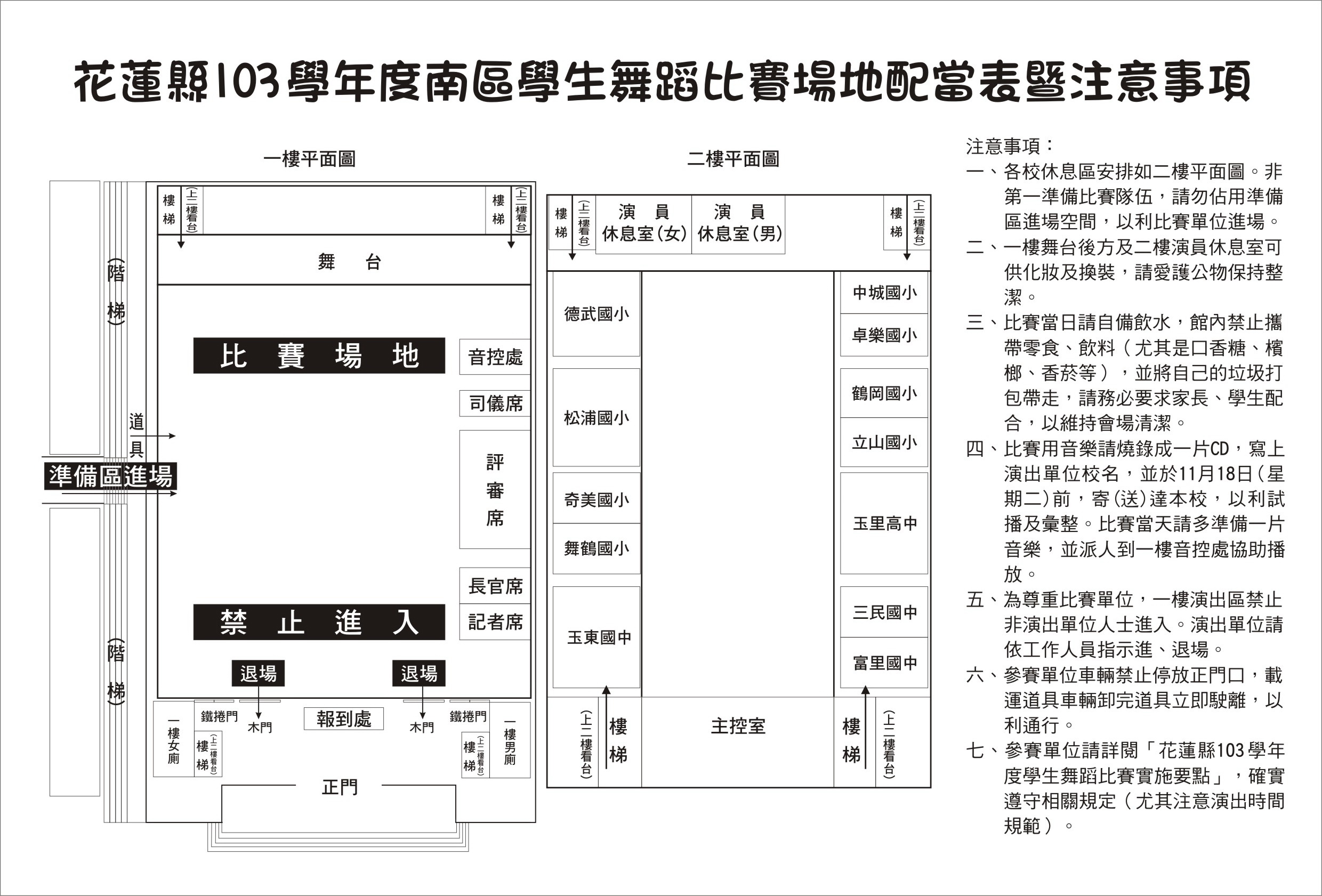 1) 103學年度南區學生舞蹈比賽場地配當表暨注意事項