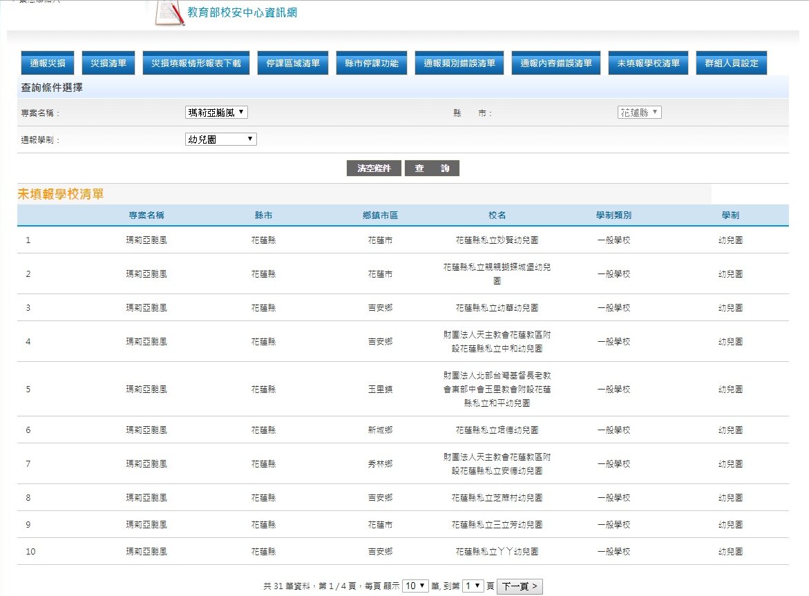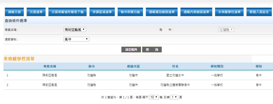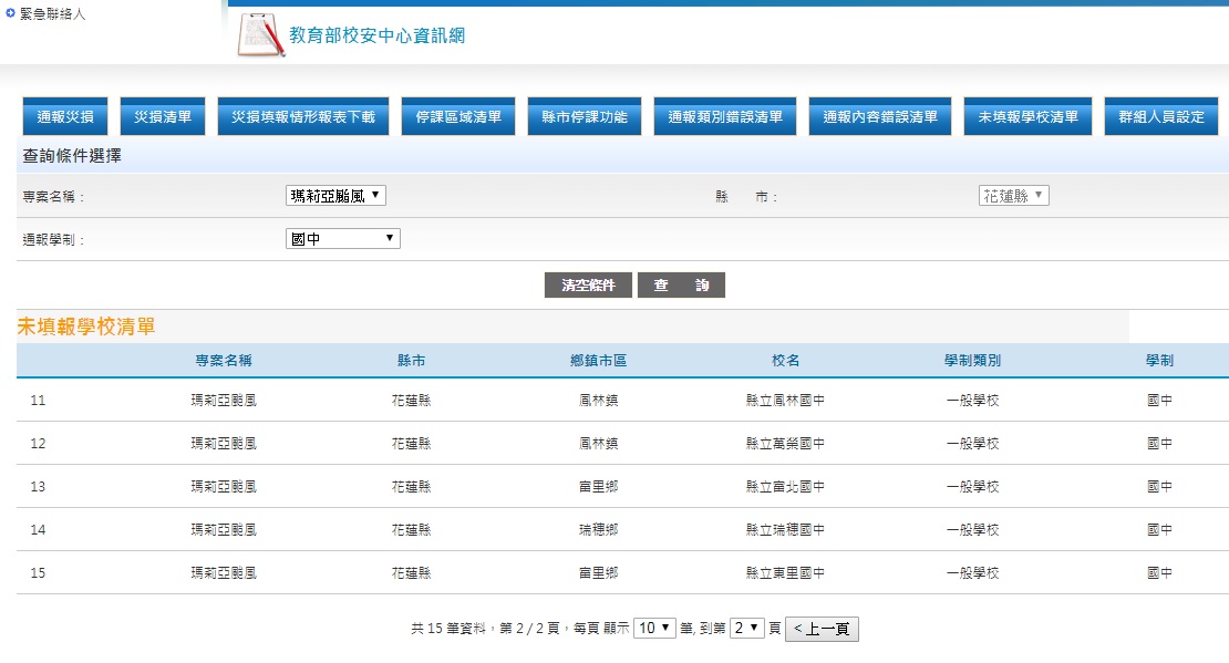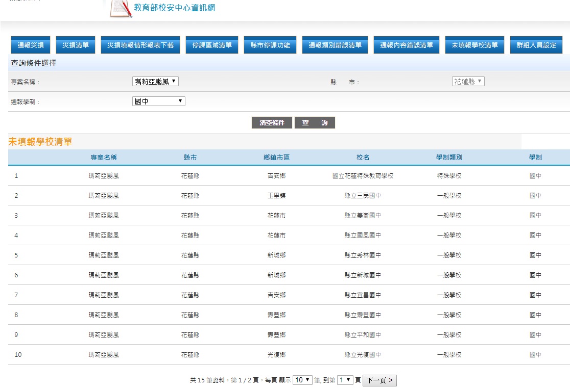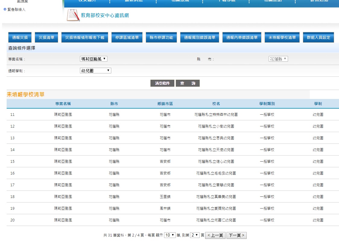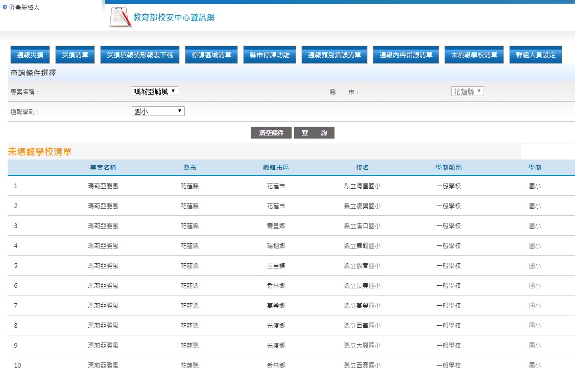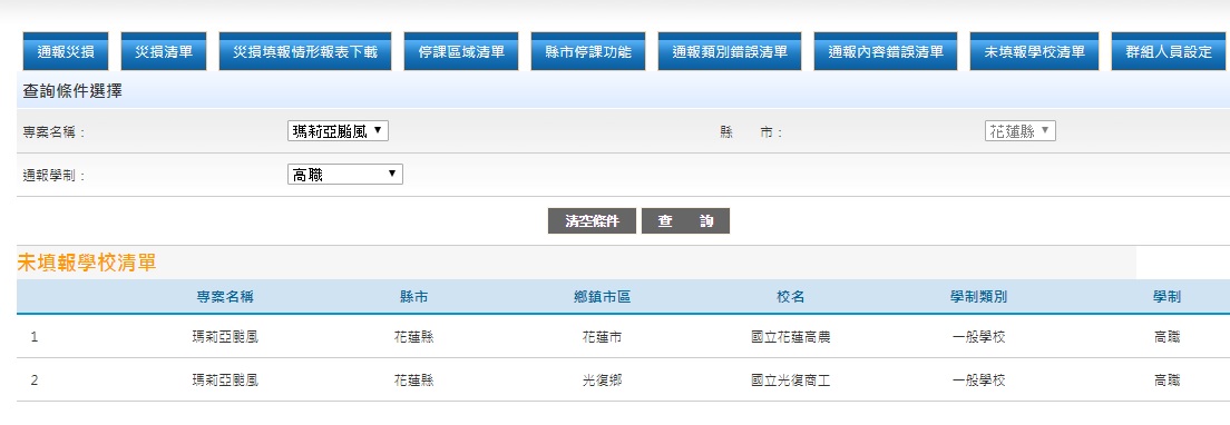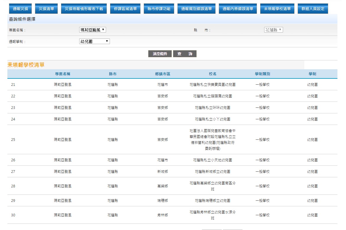 2) 未填報災損情形的國小學校清單
