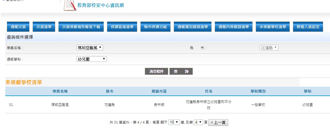 4) 未填報災損情形的國中學校清單1