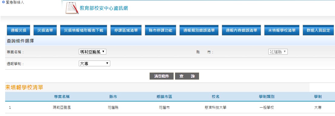 【重要通知】今日請各位主任巡視校園後,回報校安中心貴校有無災損,無災損