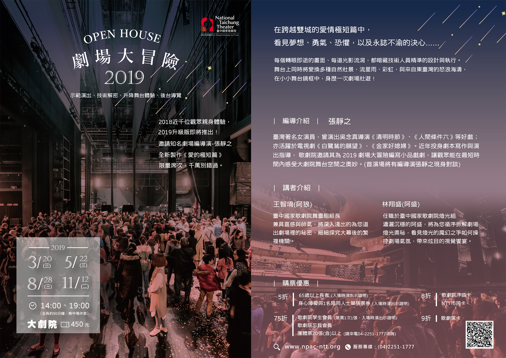 (二)本活動需購票入場,原價 450 元,學生優惠票券 250 元(每人限購 1 張,且須透過學校統一訂購)。如需購買,請電洽歌劇院服務專線(04)2251-1777