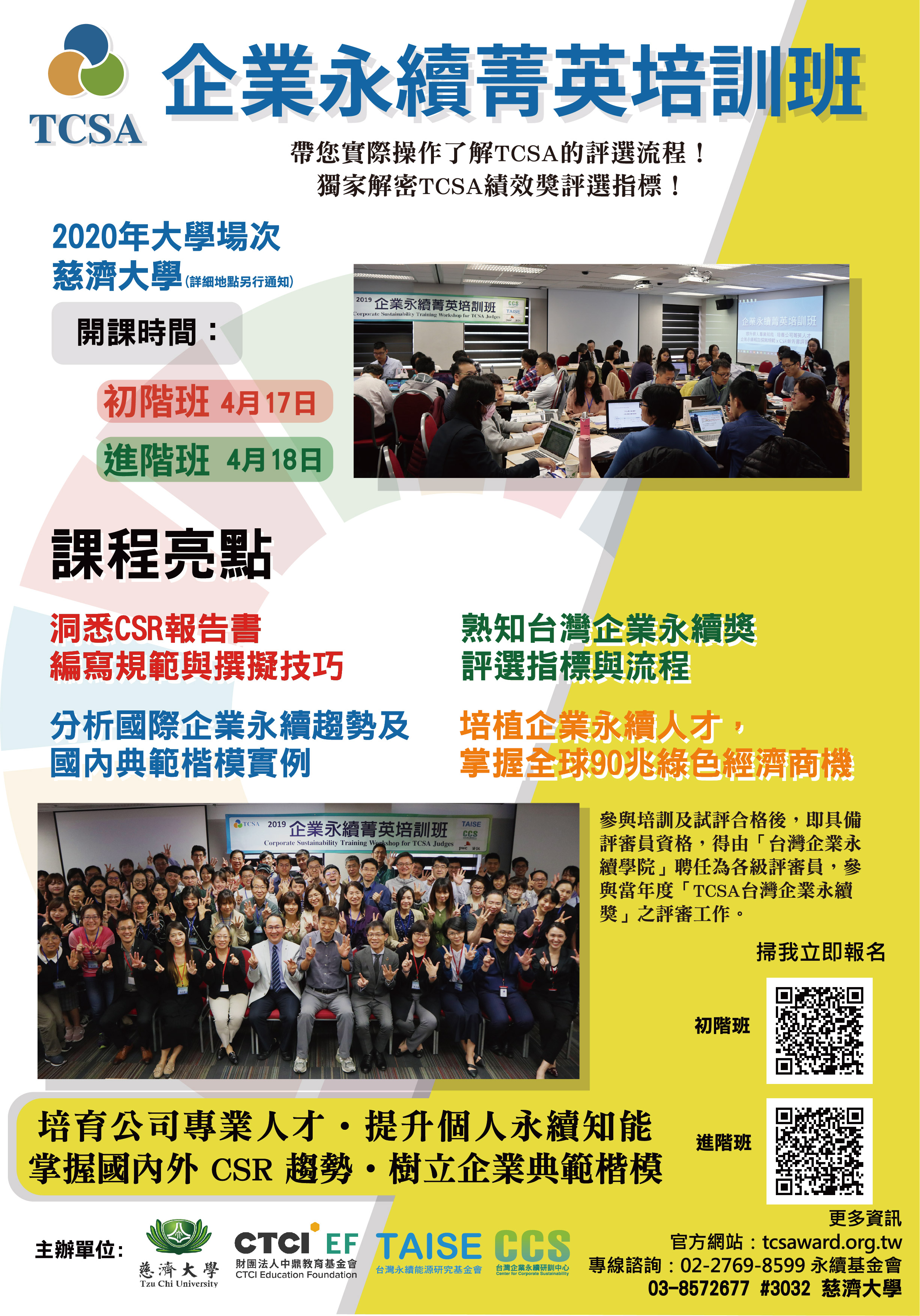 【轉知】檢送「2020企業永續菁英培訓班─慈濟大學場」活動資訊~