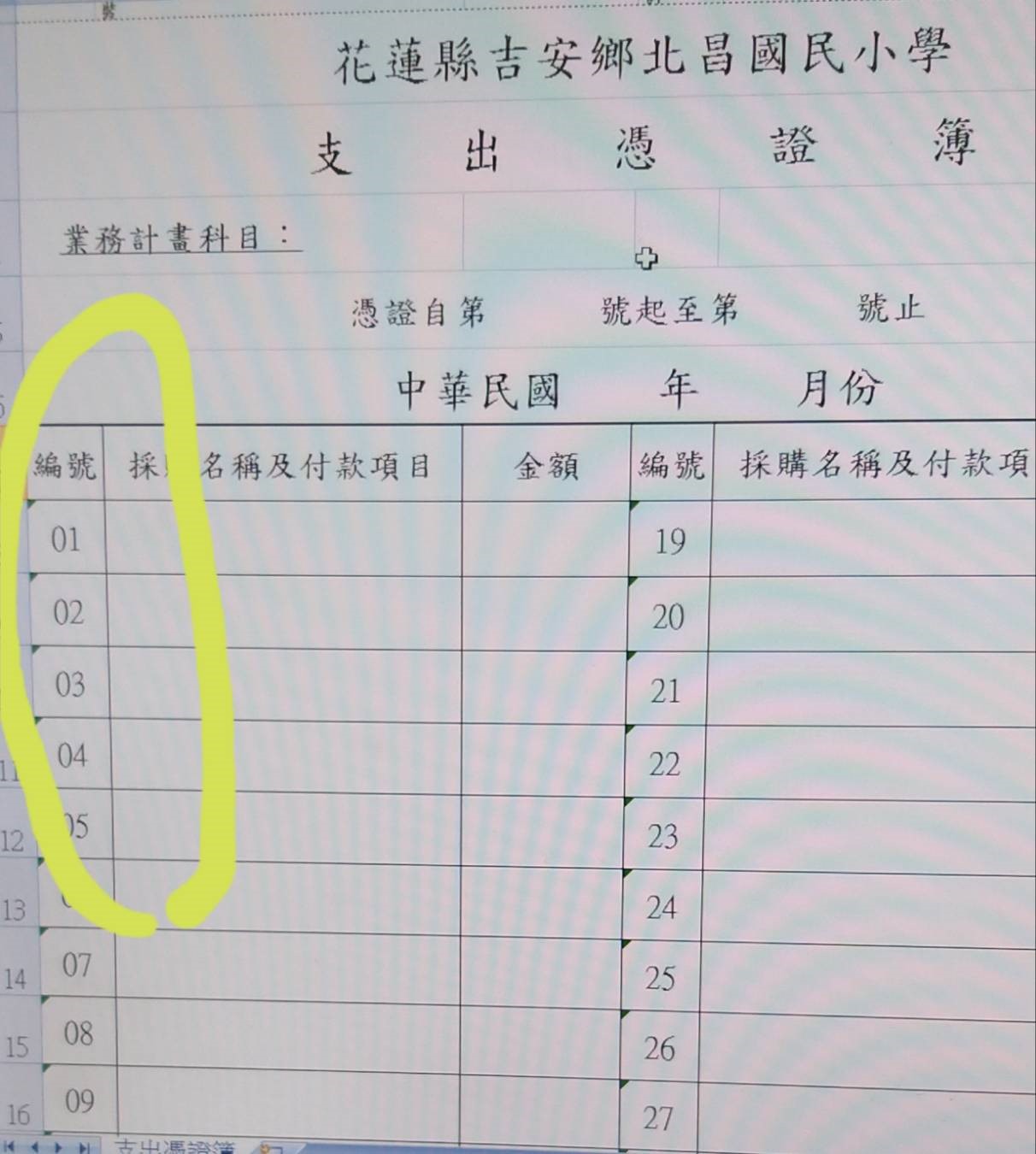 封面下的編號(01 、 02 、 03............)、需對應原始憑證上的編號『第_________號』。
