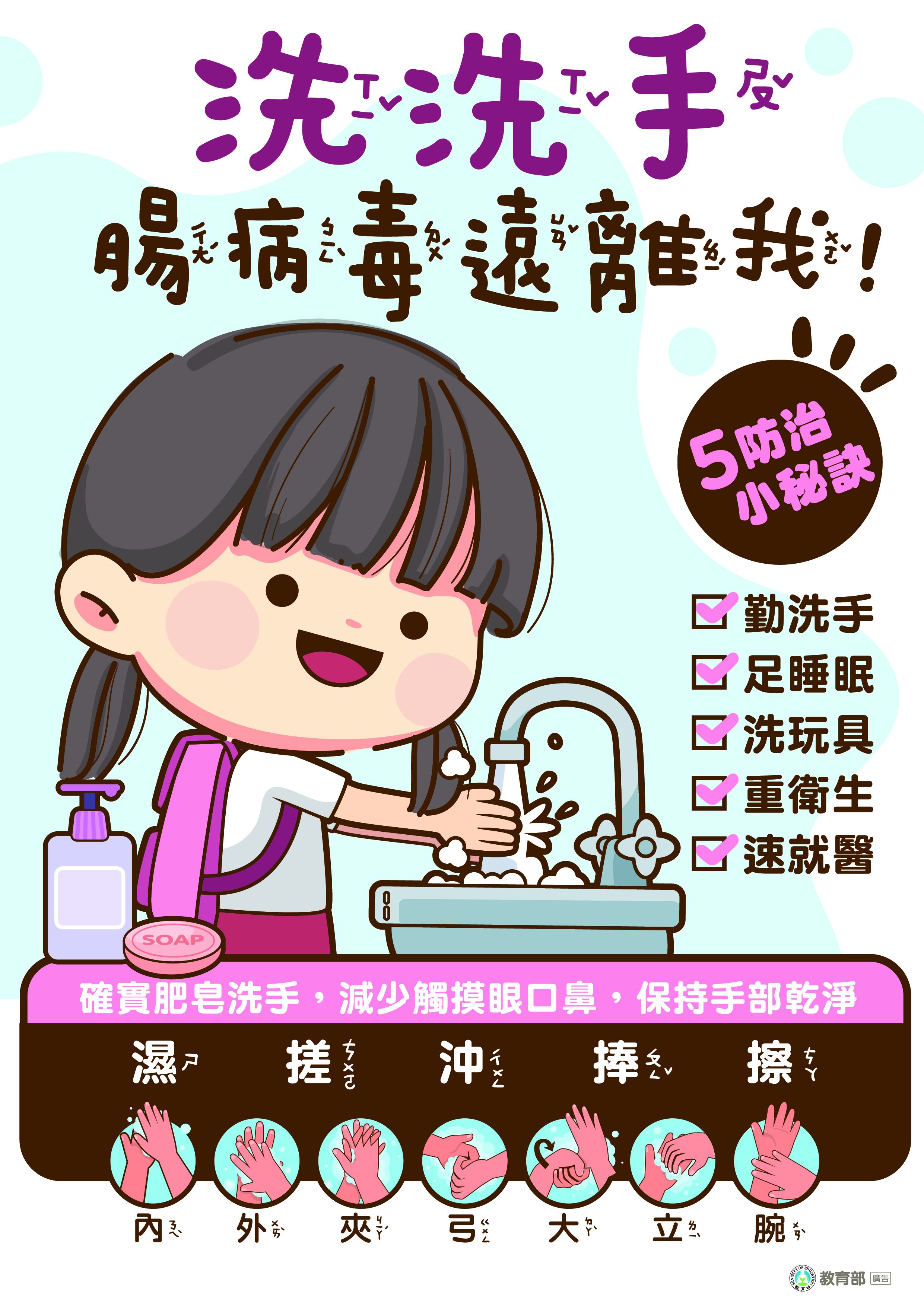 為因應近期國內腸病毒疫情有上升趨勢,教育部製作腸病毒宣導海報電子檔1份,請幼兒園多加運用,正式公文另案函知。