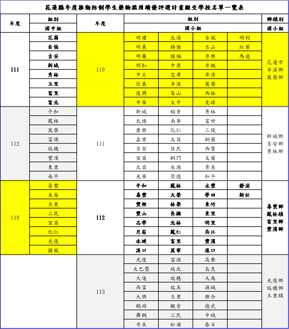 二、請 110 年度本縣「防制學生藥物濫用」評選績優單位(國中小)如附件,務必繳交。