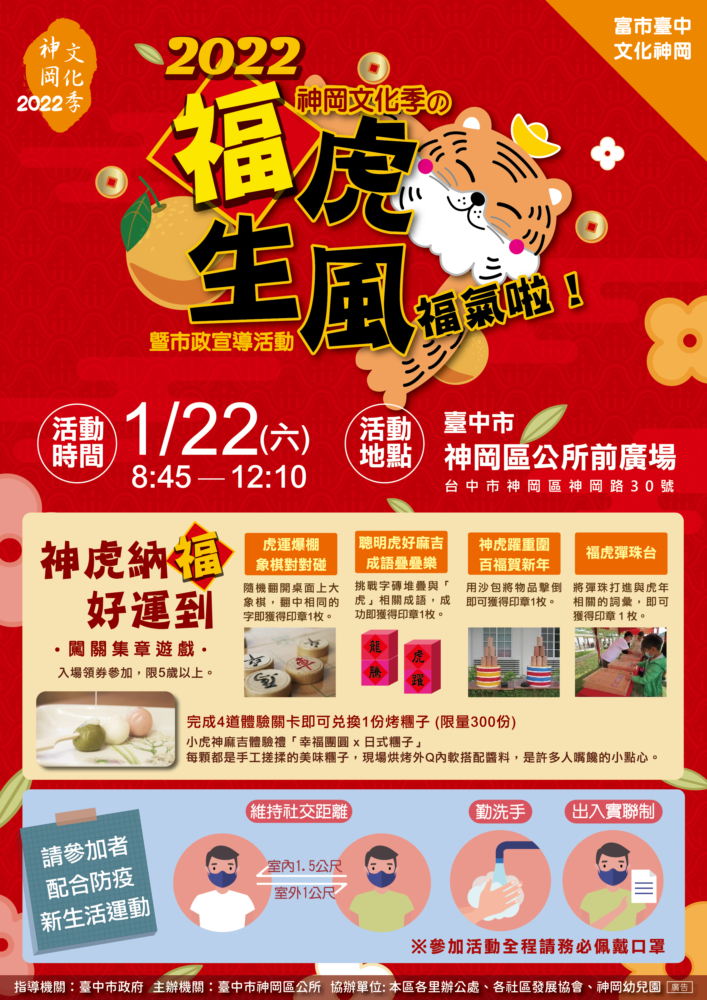 轉知2022神岡文化季の『福虎生風 福氣(hok-khì)啦』暨市政宣導活動文宣,敬請踴躍參加,請查照。