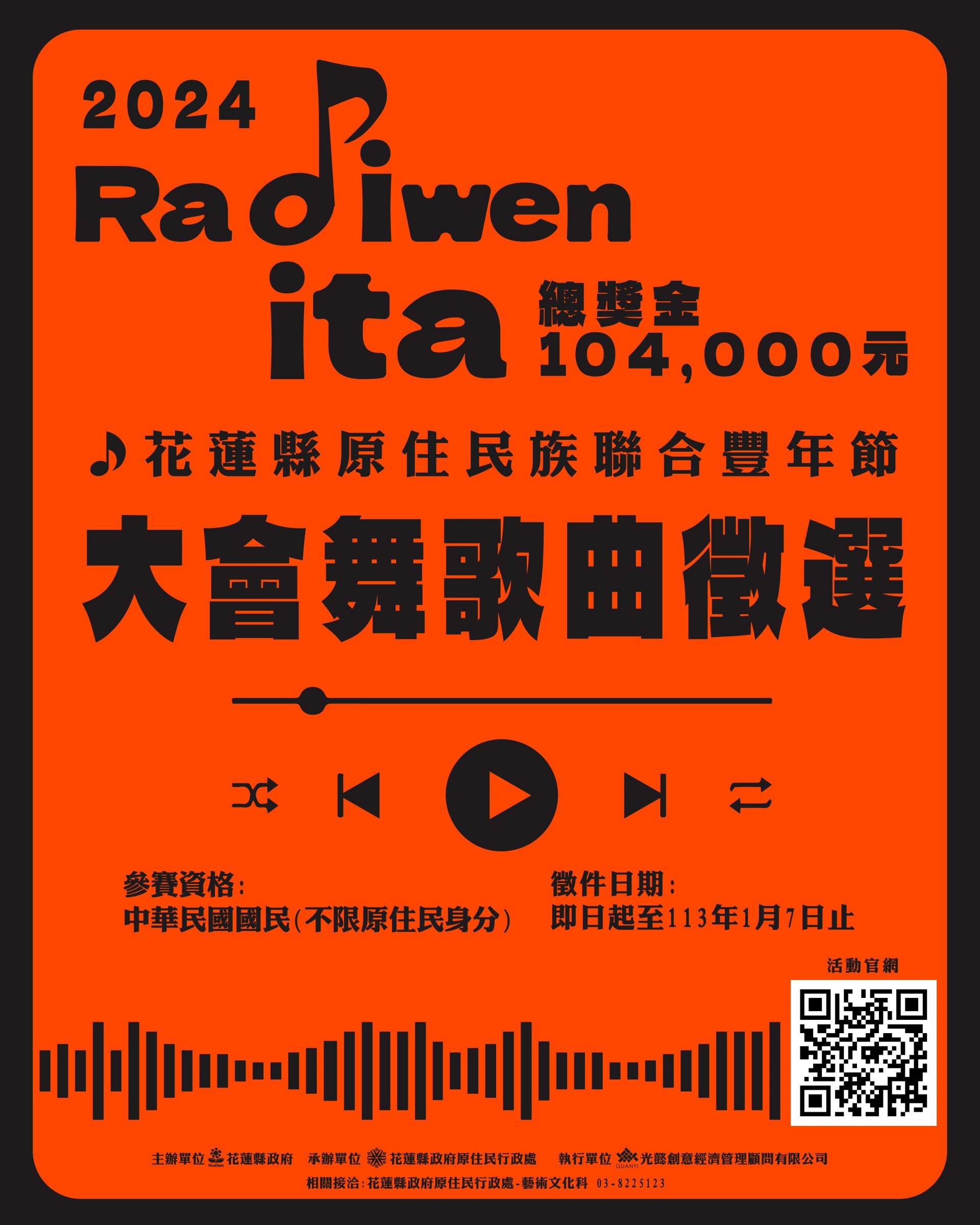 七、推薦歌曲方向:以適合豐年節活動、好聽易學,利於族語推廣及編排舞步之傳統或創作族語歌曲為原則。