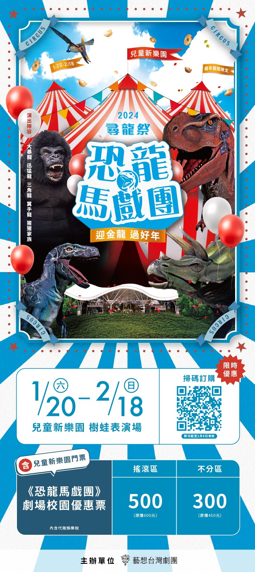 【訊息轉知】臺北大眾捷運股份有限公司兒童新樂園訂於寒假期間113年1月20日至113年2月18日展出「2024尋龍祭恐龍馬戲團」相關展演資訊,請查照。