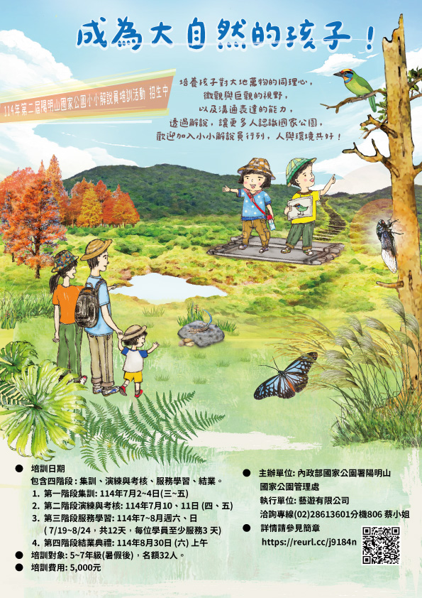 (四)第四階段-結業典禮:活動時間為 8 月 30 日(週六)上午 10~11 時;活動地點為陽明山國家公園遊客中心。