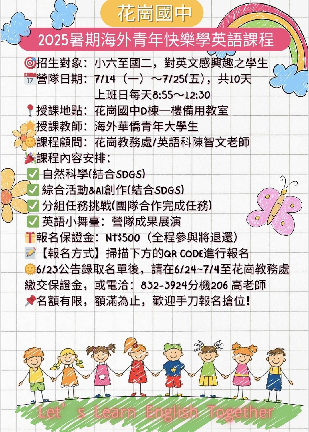 (一)招生對象:小六至國二,對英文感興趣之學生