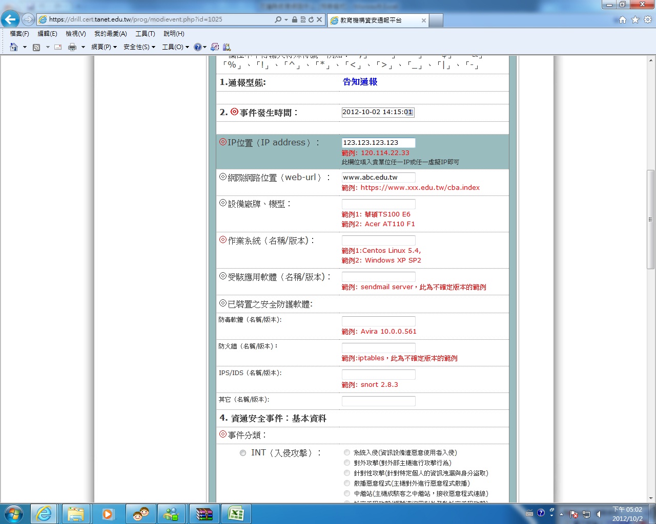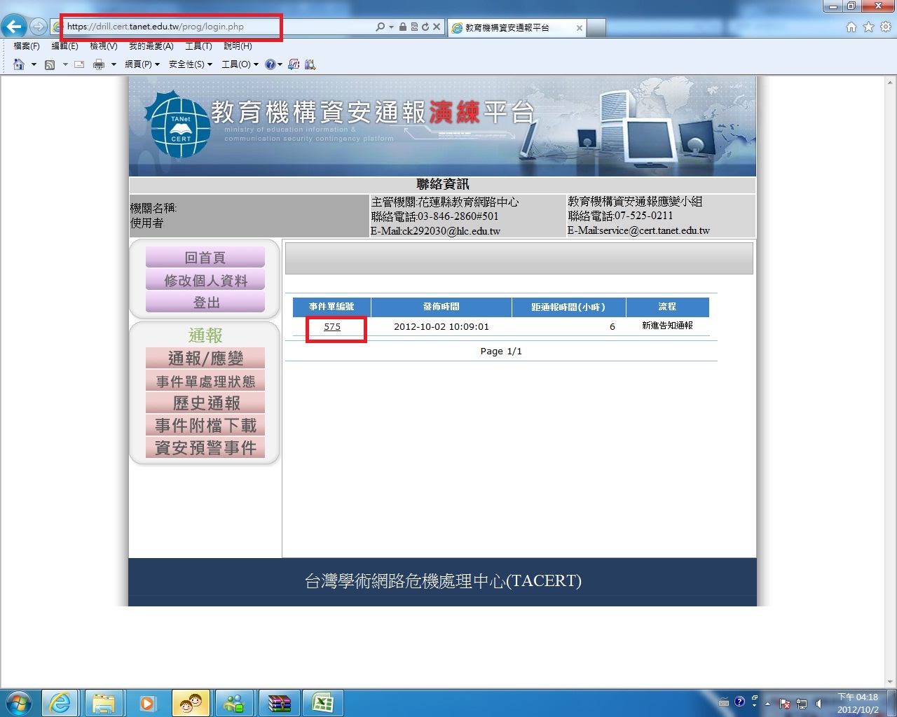 https://drill.cert.tanet.edu.tw/ (登入帳號、密碼同資安通報平台))。