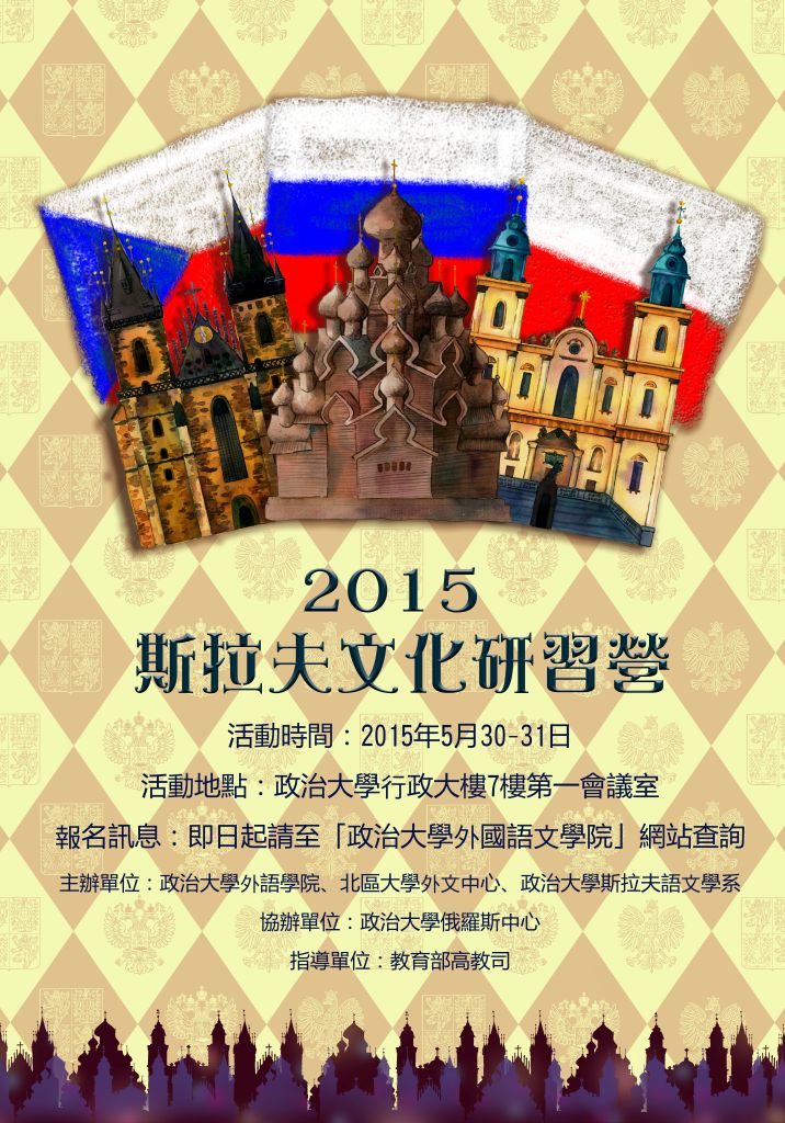 國立政治大學外國語文學院訂於本﹙104﹚年5月30-31日舉辦「斯拉夫文化研習營」,鼓勵師生踴躍報名參加,請查照。