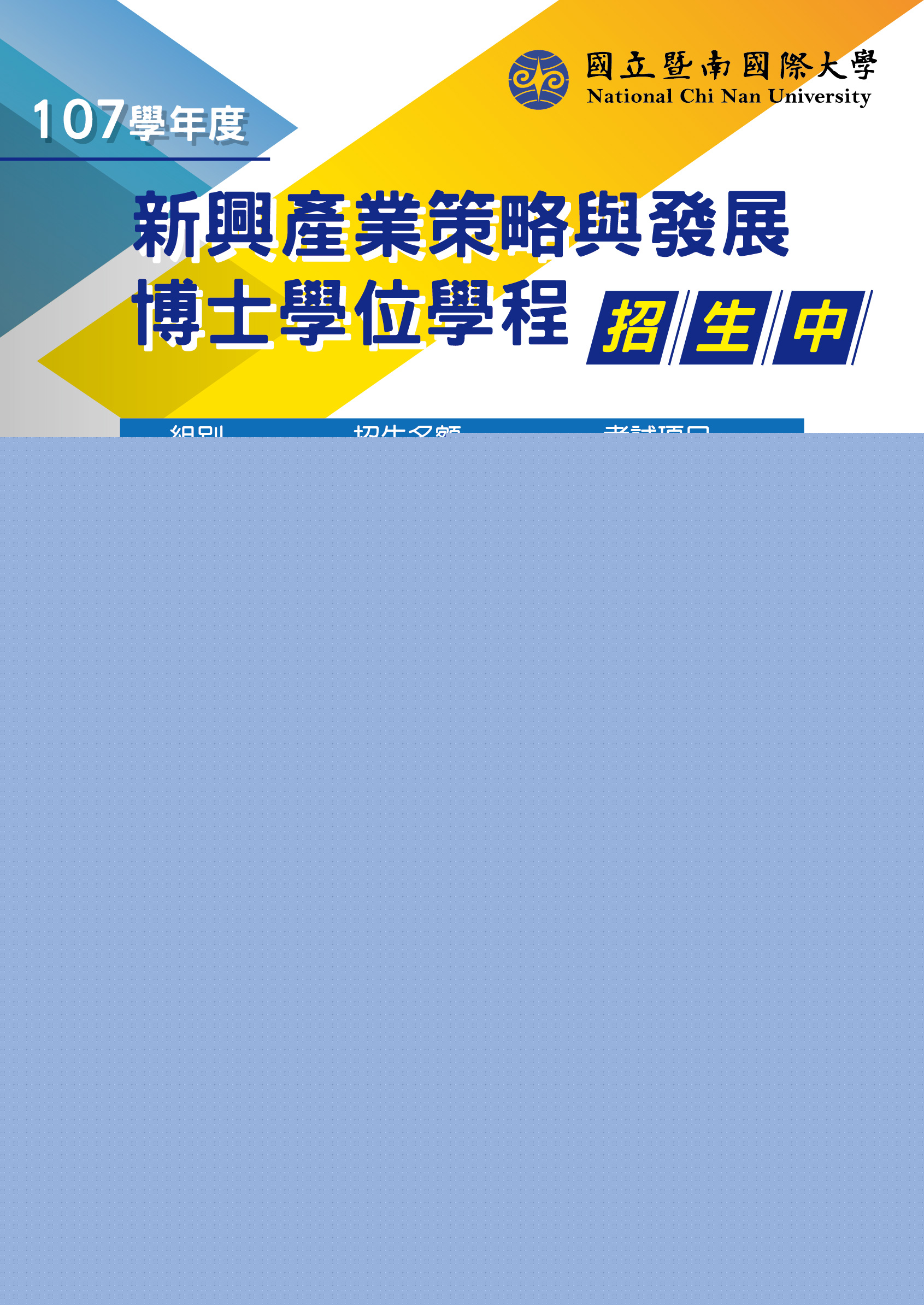 轉知 國立暨南國際大學新興產業策略與發展博士學位學程107學年度入學考試資訊