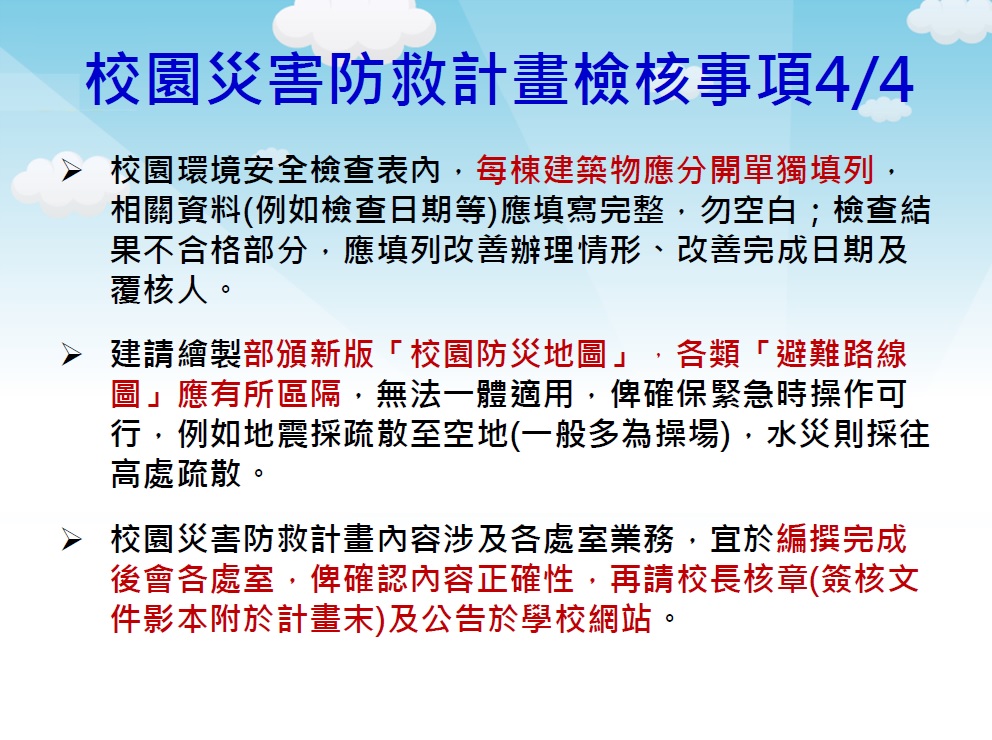 【重要通知】參加第一梯次校園災害防救計畫審查作業工作坊的學校請於6月7日17:00止將電子檔上傳到花蓮縣防災教育深耕網