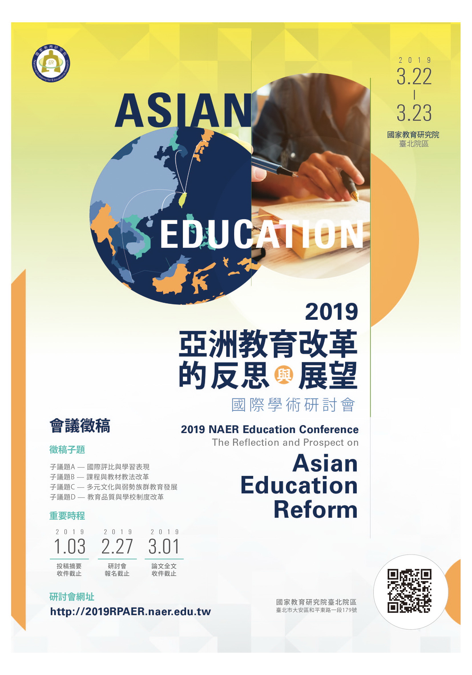 【轉知活動資訊】辦理2019年國際學術研討會「2019亞洲教育改革的反思與展望」,請各校有興趣之人員踴躍報名參加。