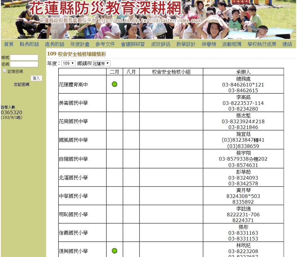 【公告】請各校的承辦人員於109年3月11日前完成109校舍安全檢核填報情形2月及校舍安全檢核小組上傳至本縣防災教育深耕網。