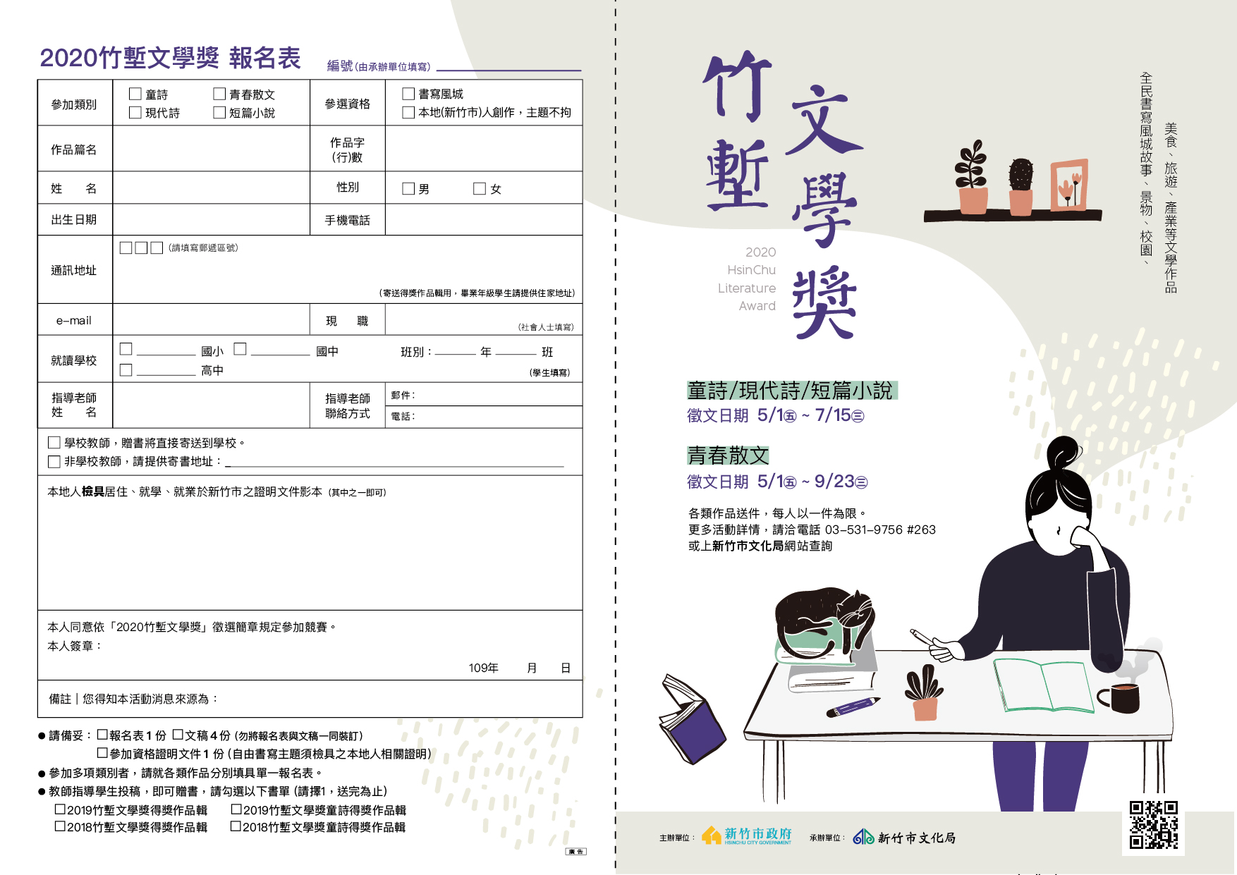 【轉知】新竹市文化局辦理之「2020竹塹文學獎」徵文簡章、海報及相關訊息請踴躍投稿~