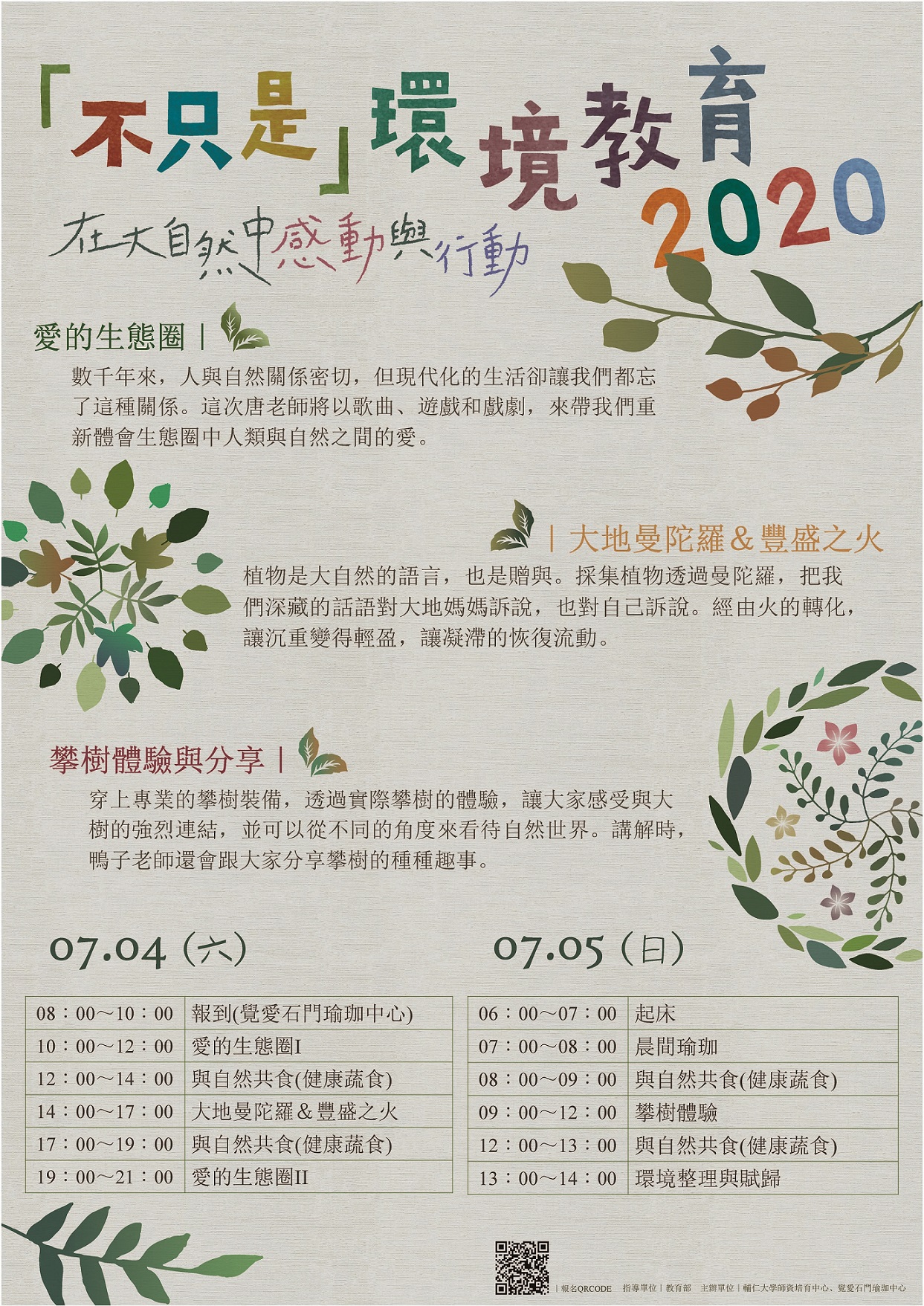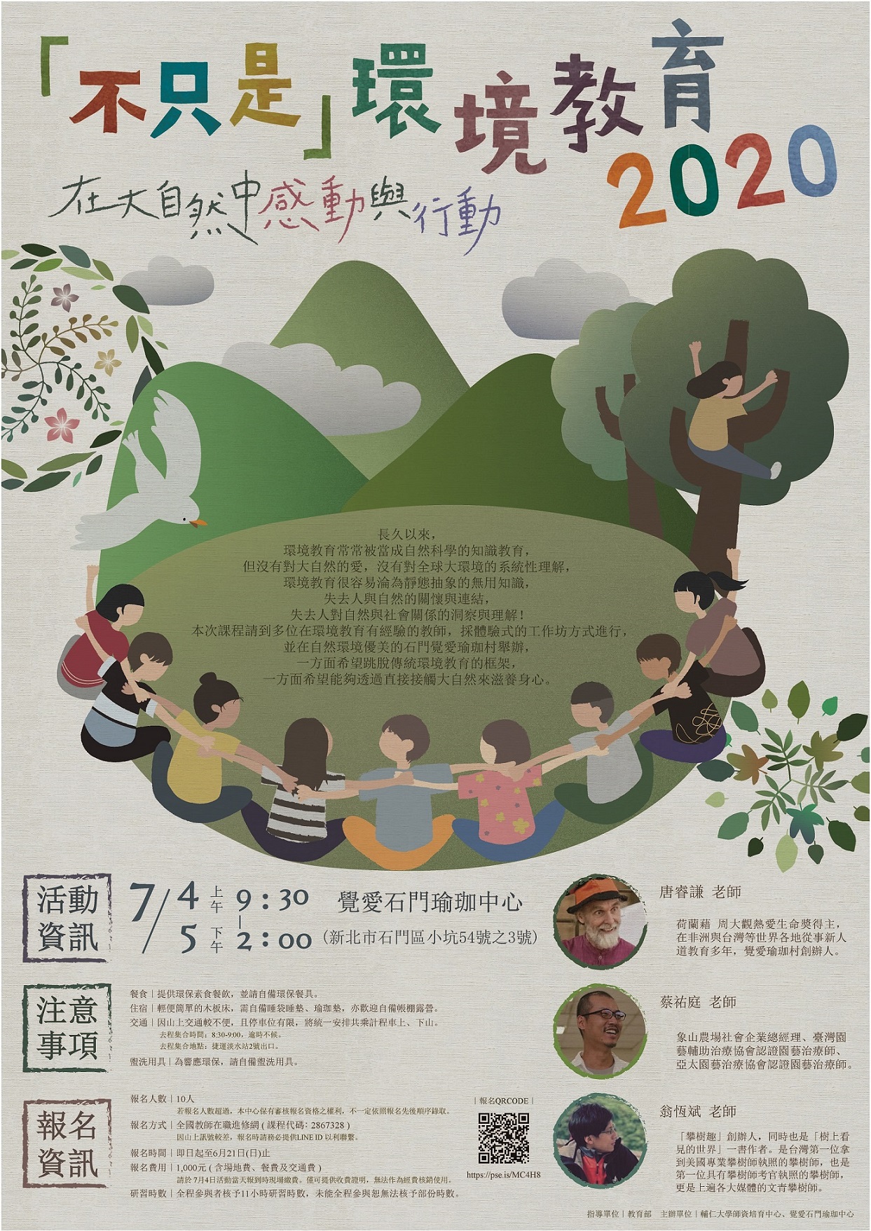 財團法人輔仁大學師資培育中心舉辦「2020不只是環境教育:在大自然中感動與行動」工作坊,請踴躍報名參加,請查照。