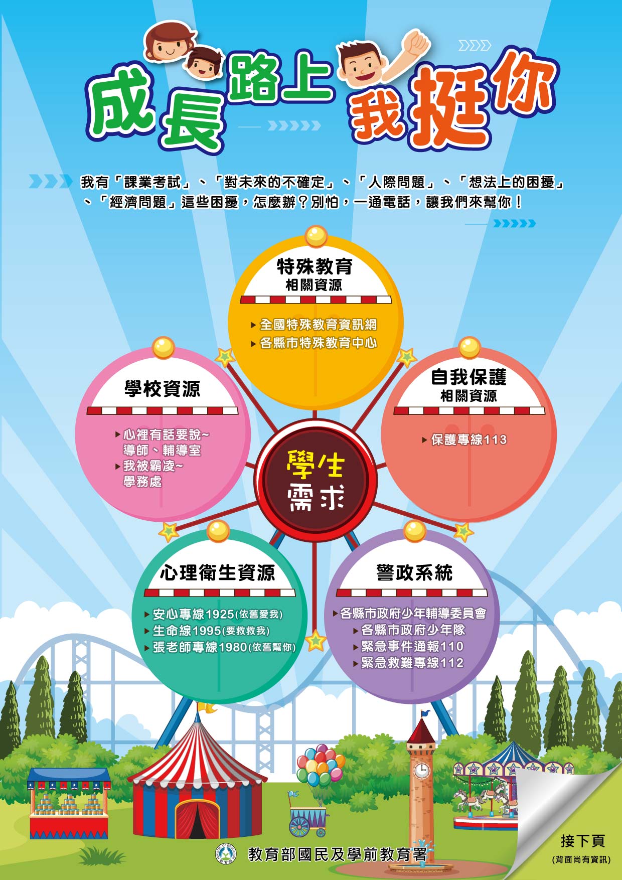 轉知教育部國民及學前教育署規劃設計之「親職教育到府服務資源宣傳單」1份