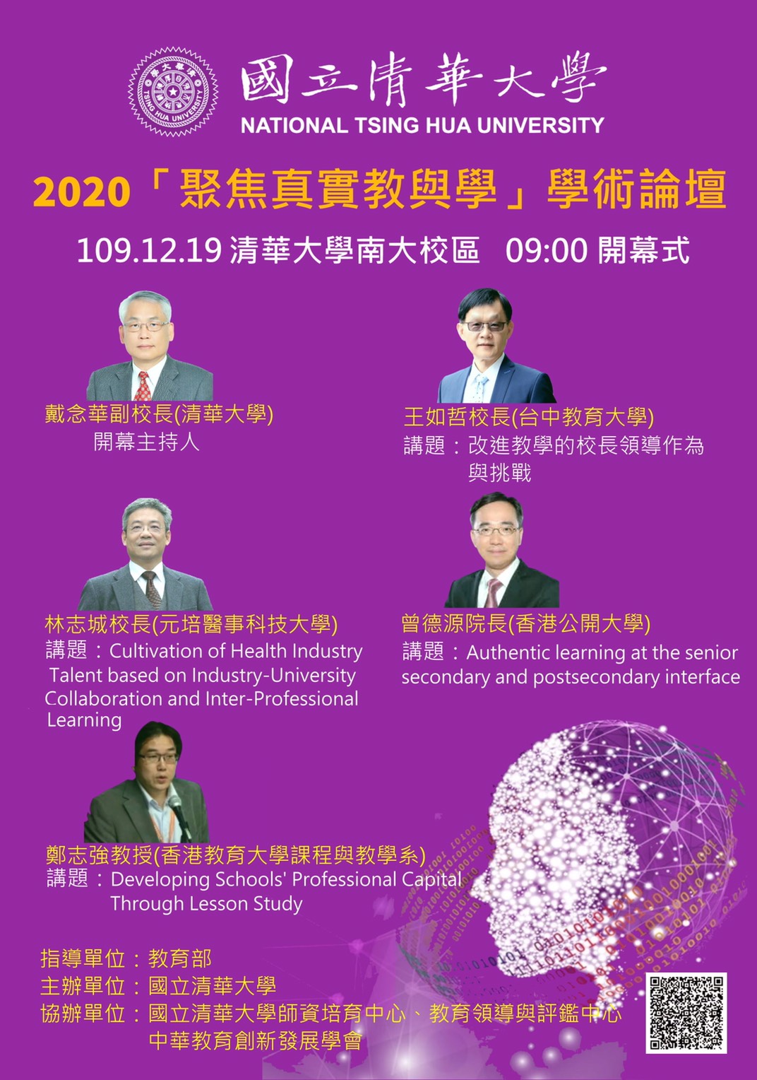 函轉國立清華大學師資培育中心訂於109年12月19日(星期六)辦理「聚焦真實教與學」學術論壇,敬請惠予公告並鼓勵踴躍報名參加,請查照。