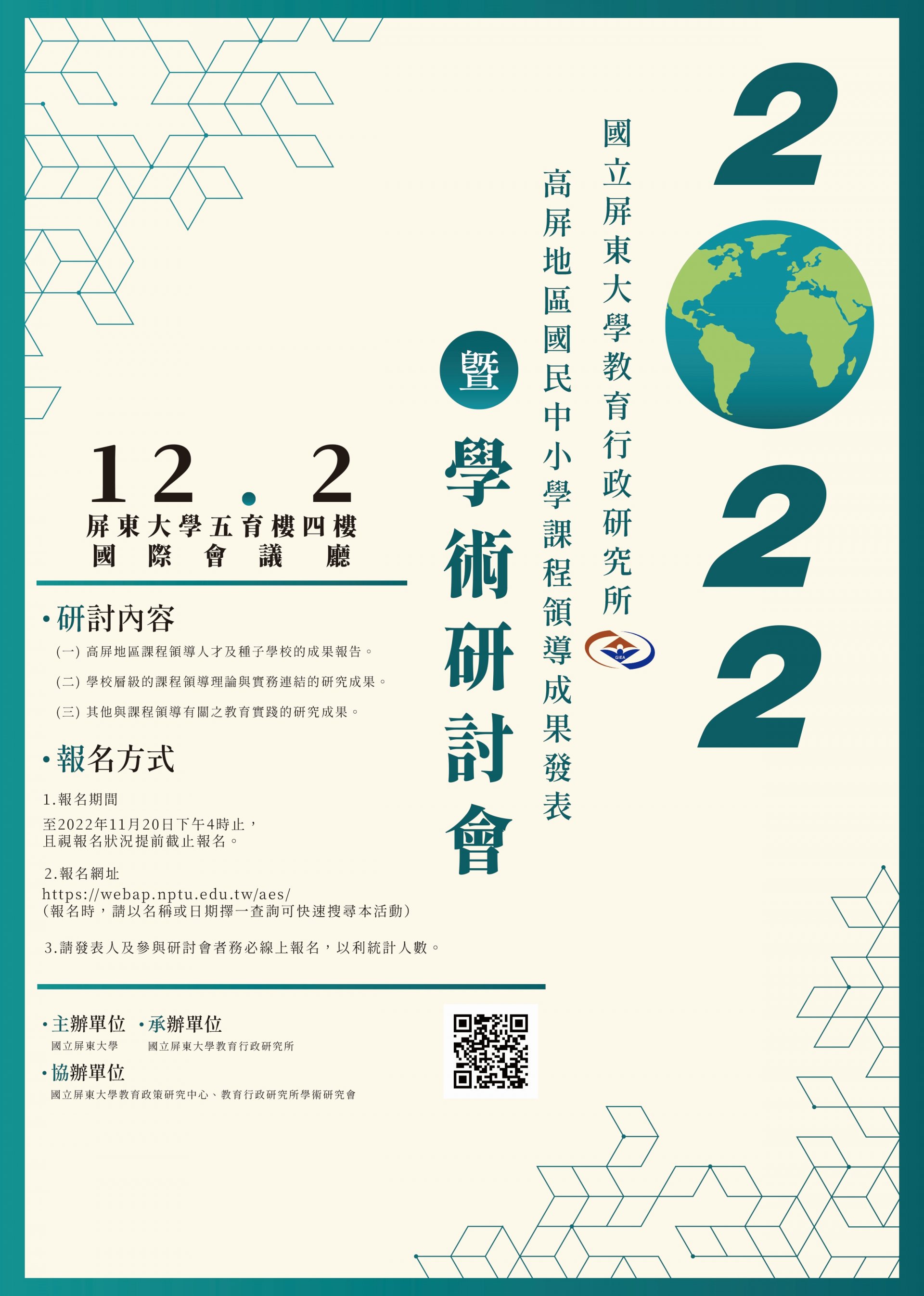 三、研討會日期 111 年 12 月 2 日(星期五),地點國立屏東大學民生校區五育樓 4 樓國際會議廳。