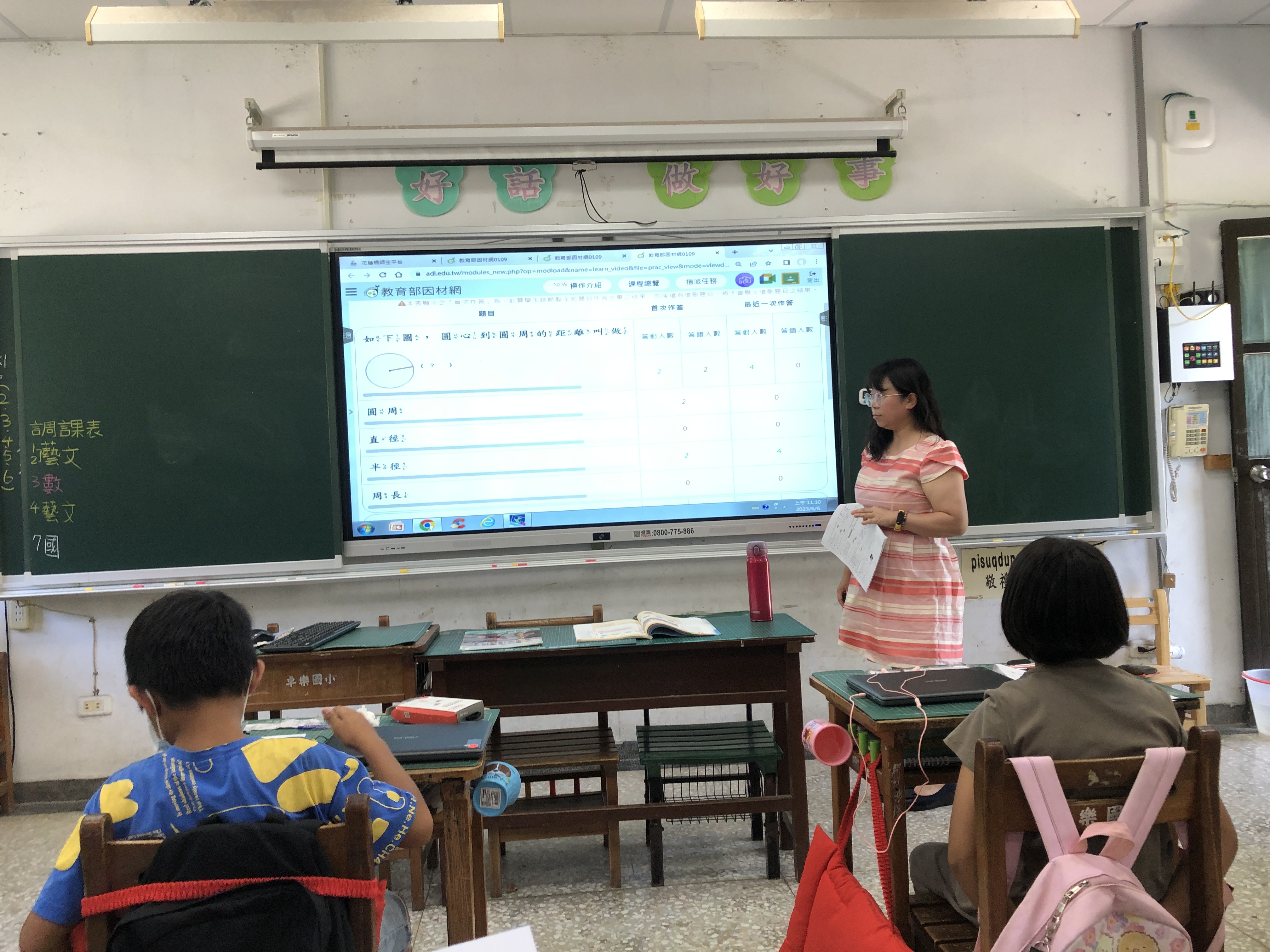 卓溪鄉卓樂國小利用因材網教學平台,進行三年級數學領域-「認識圓」的教學活動,讓學生透過影片的自主學習,很快就了解圓心、圓周、半徑和直徑等重要概念。 老師先利用因材網上影片讓學生自學今天的上課單元,並完成練習題及動態評量,老師則利用後台掌握學生學習進度;老師依照學生答題情形,解釋學生錯誤的原因,並說明本節課的學習重點;最後則是依照學生錯誤的情形指定回家作業,依學生的起點行為進行學習。