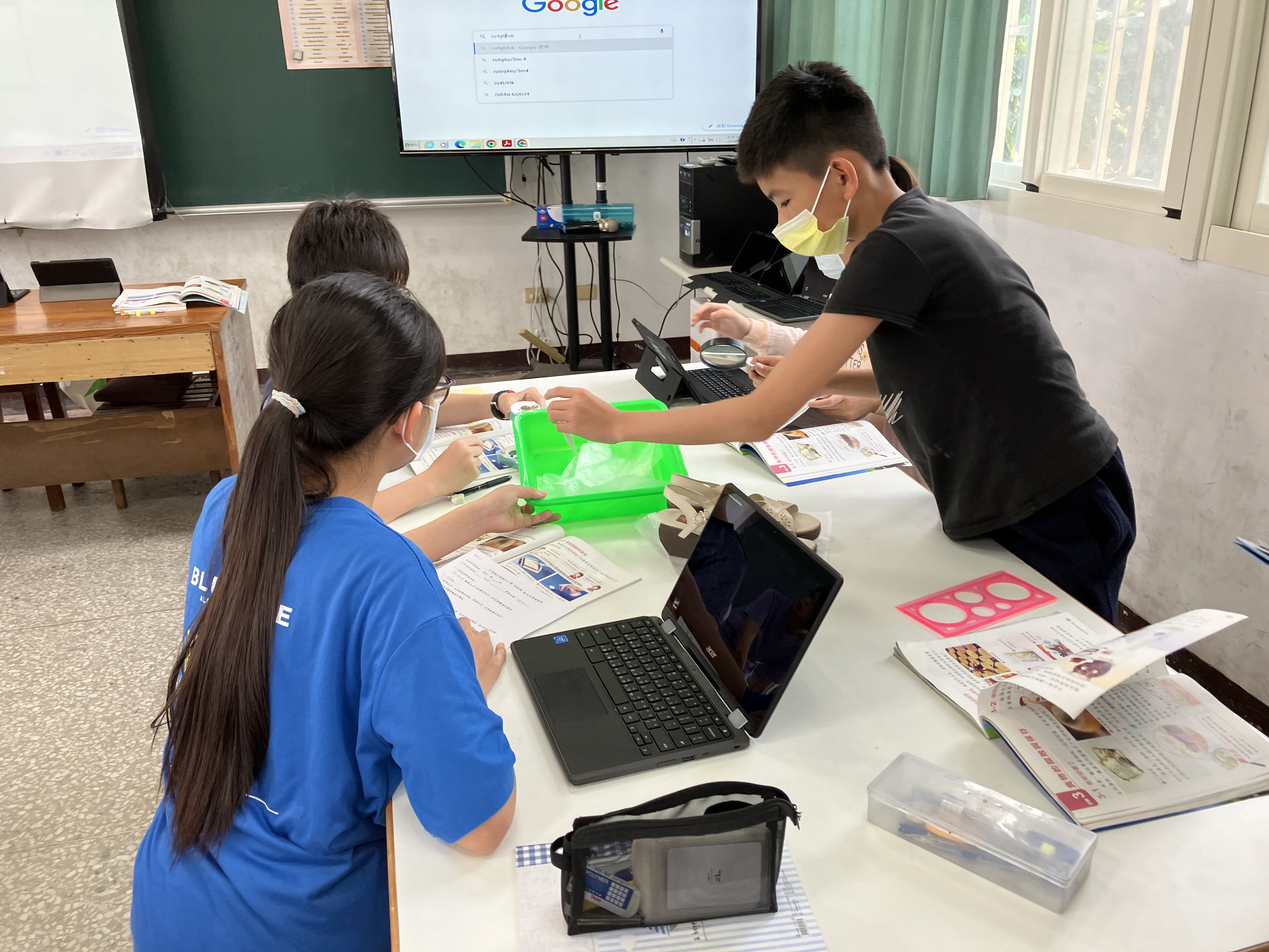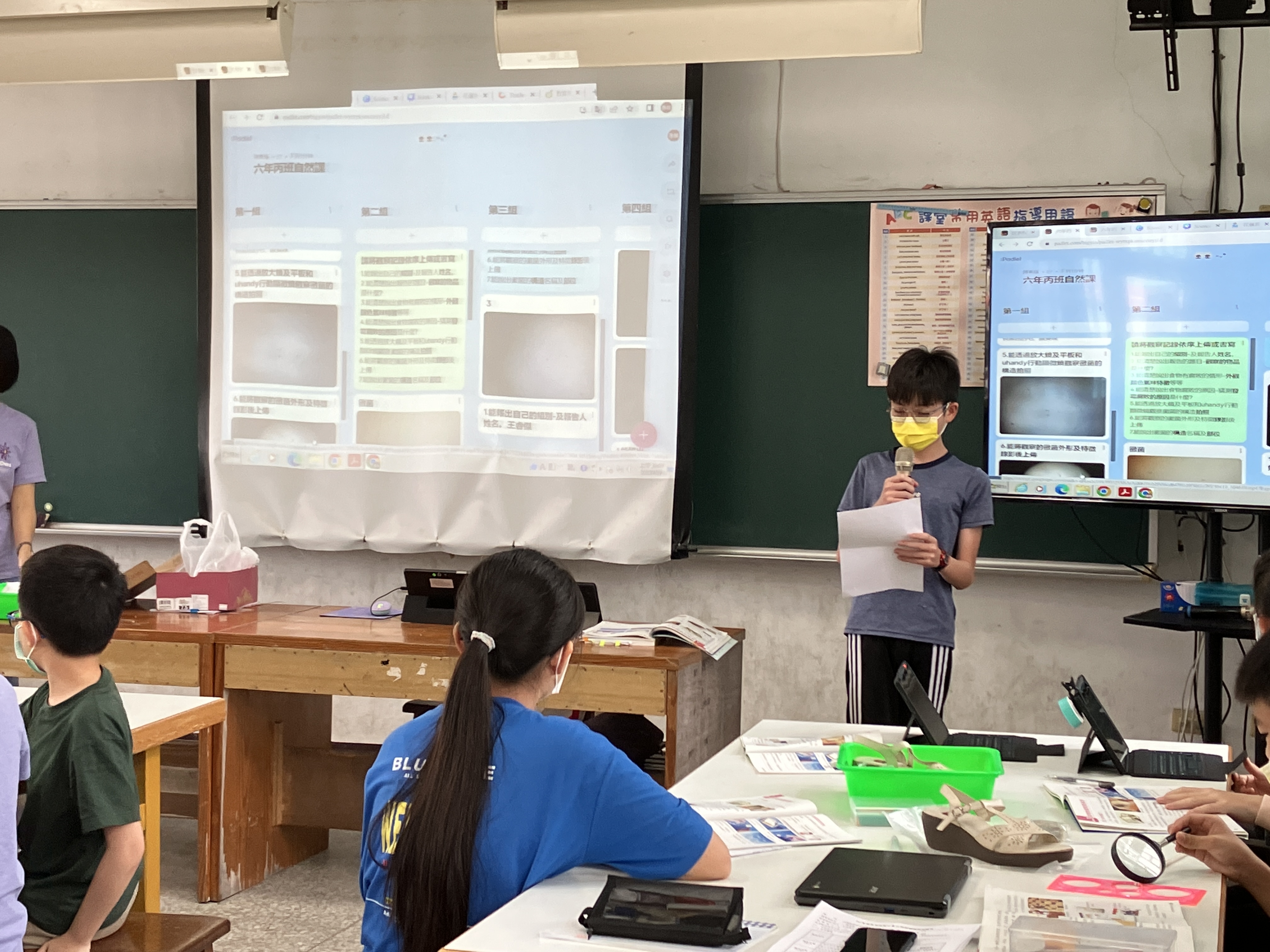 北埔國小陳春蔭老師善用因材網、PaGamO與Padlet數位工具,引導六年級學生探究食物發霉的原因及認識黴菌的構造。藉由數位學習輔助探究實作課程,放大兩者的教學成效。   學生利用因材網預習當節學習單元影片,並記錄單元自學單,完成影片後進行因材網練習題。在學生完成課前自學後,老師於因材網後台了解學生學習狀況。在課程中,老師請各組領取各式發霉物品,並將觀察與討論結果上傳至Padlet。再由各組上台發表與互評,進行組間互學,教師依各組表現與分數給予加分獎勵。最後由老師澄清迷思觀念,並歸納總結課程討論內容,請學生完成PaGamO課後作業及交代因材網預習進度。