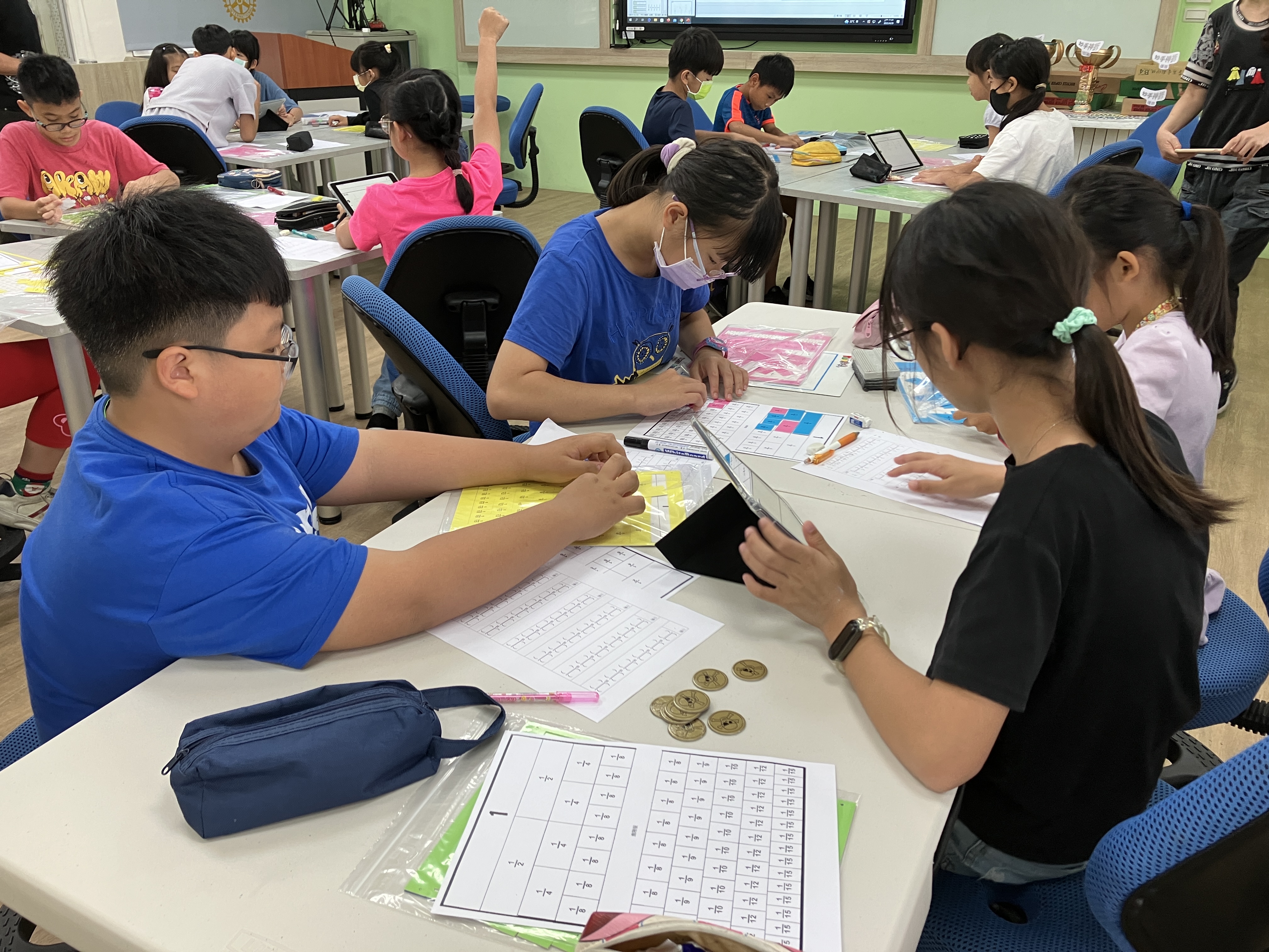 明禮國小李正蒲老師進行四年級數學等值分數單元教學時,透過情境任務體驗「妙手神拆」奠基活動,經由實物操作與Jamboard遊戲紀錄討論,讓學生經驗並理解其概念。   老師將班級學生分為五組,課前派發因材網學習任務,讓學生完成自學影片及練習題。以小朋友喜愛的蛋糕、巧克力、麻糬作為課中的引導提問。以妙手神拆遊戲進行組內共學,每組再派一人到別組進行分數爭霸戰遊戲,並出題給他組解答。最後由老師針對學習目標等值分數做總結說明,並頒發組間競賽獲勝獎盃。在遊戲中學習,讓學生能應用學習概念,也讓課堂增加趣味性。