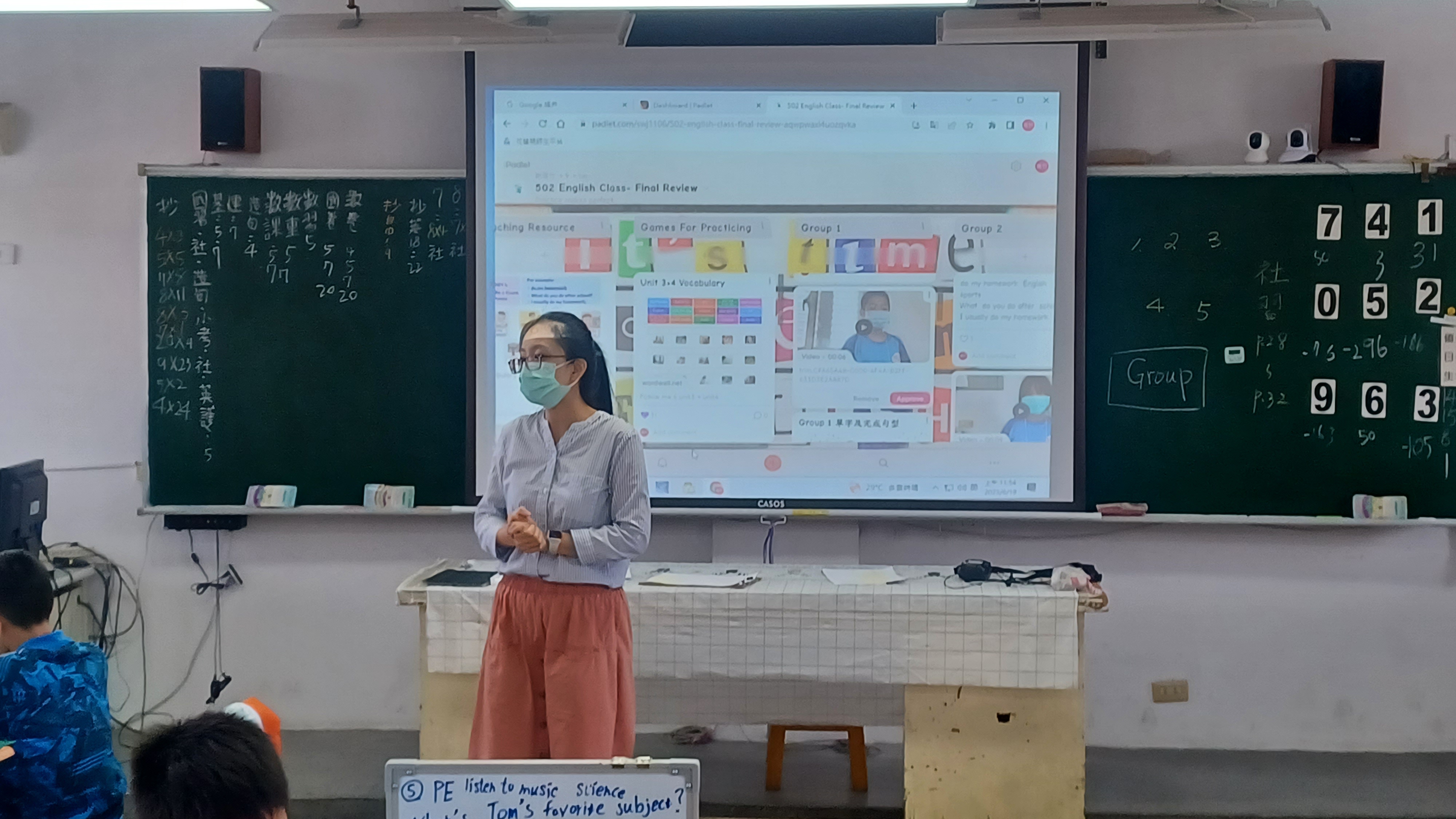教師利用Padlet展示學生上傳成果。(鑄強國小)
