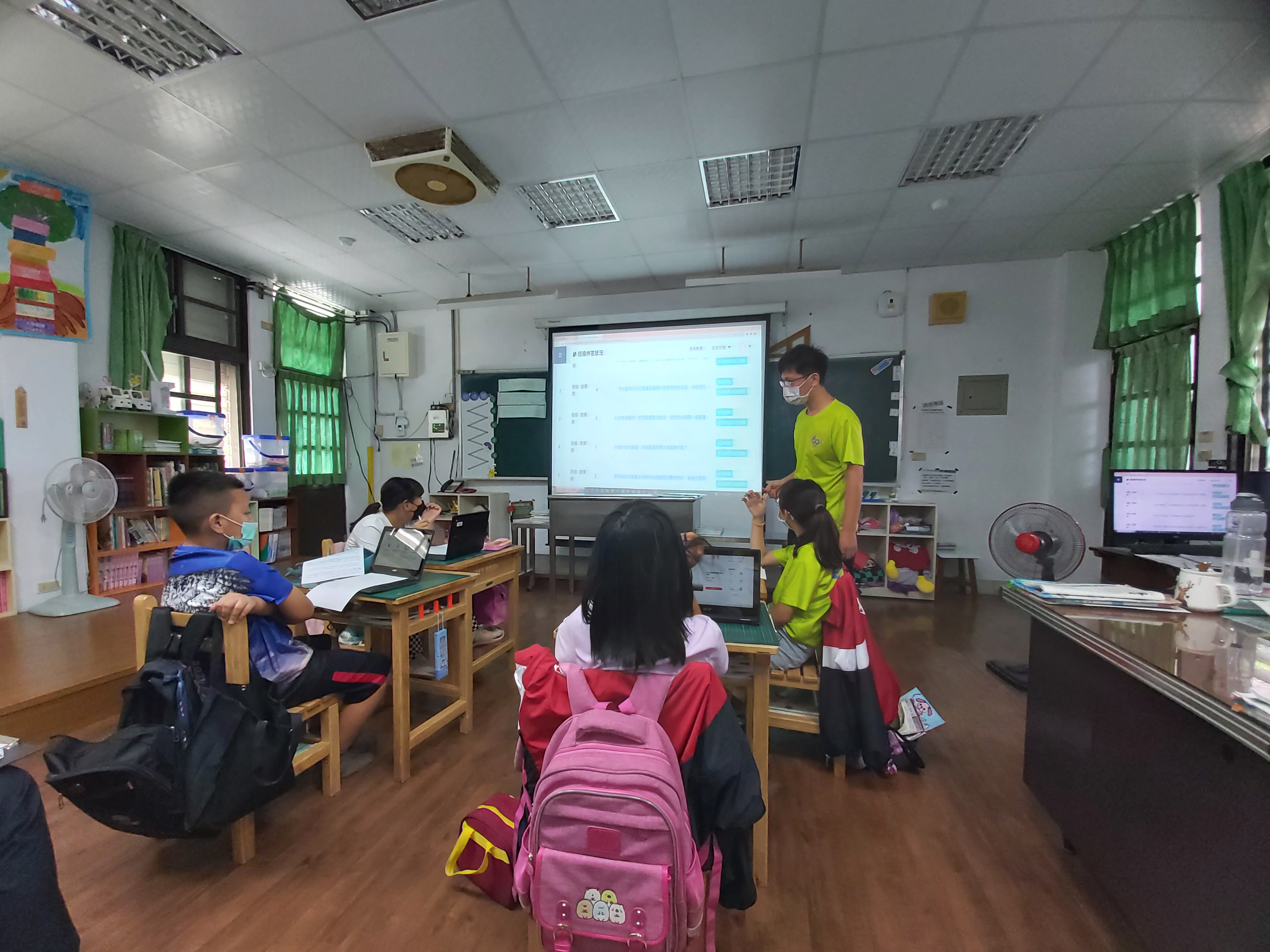 老師利用PaGamO和學生共同討論難點。(明里國小)