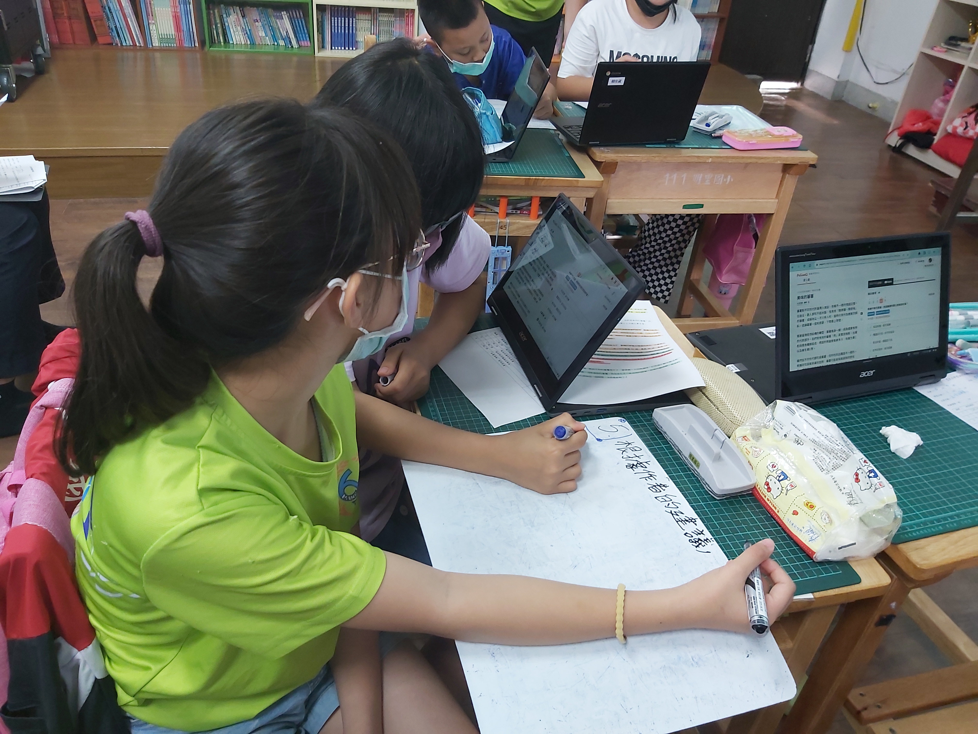 小組間互相討論,合作解決學習上的困難。(明里國小)